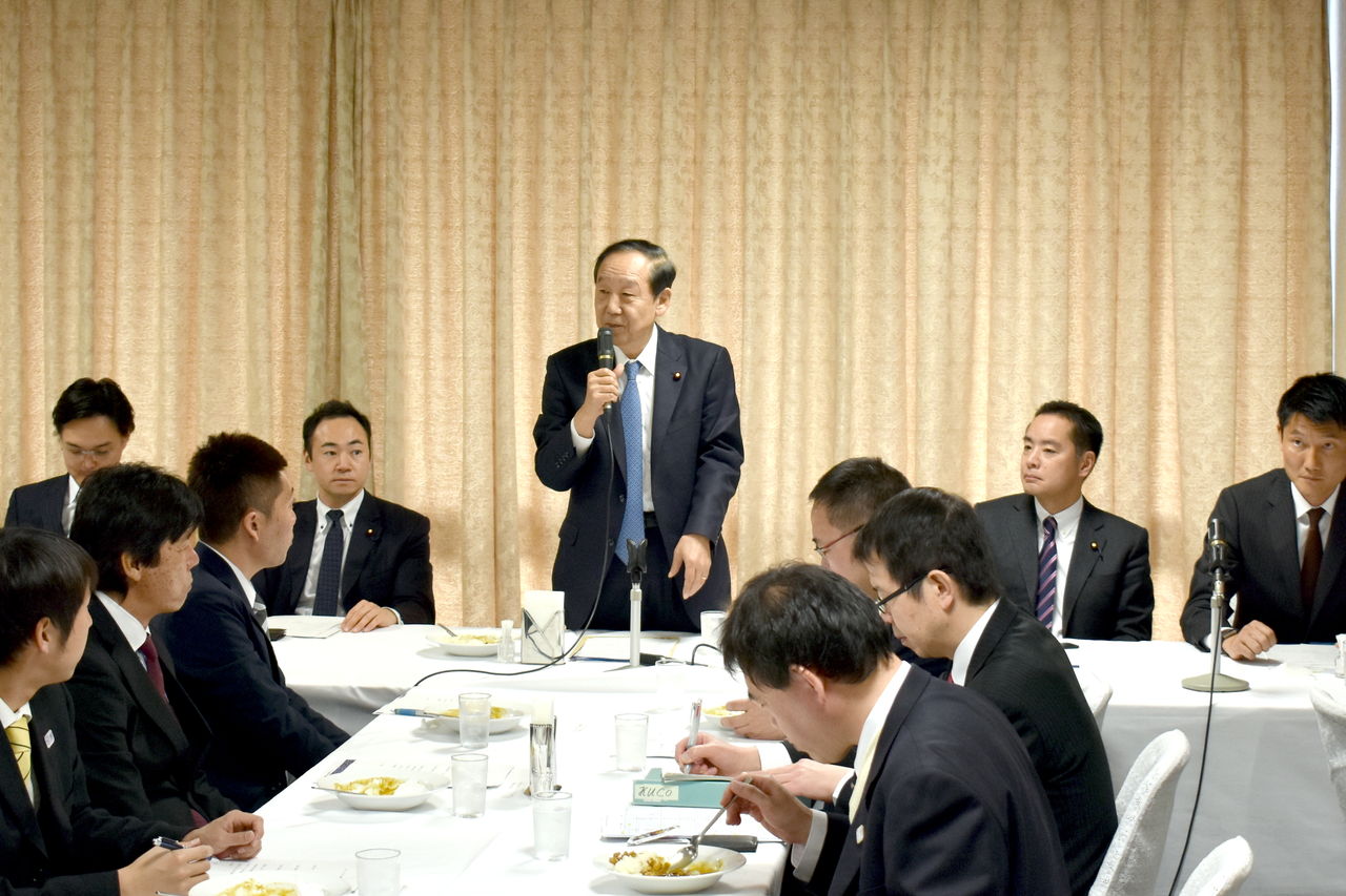 ホテルニューオータニにおいて、自民党東京都連5役と東京都宅建政治連盟の役員の皆さんとの意見交換会が行われ、鴨下一郎都連会長らと一緒に、都連政調会長として出席しました。