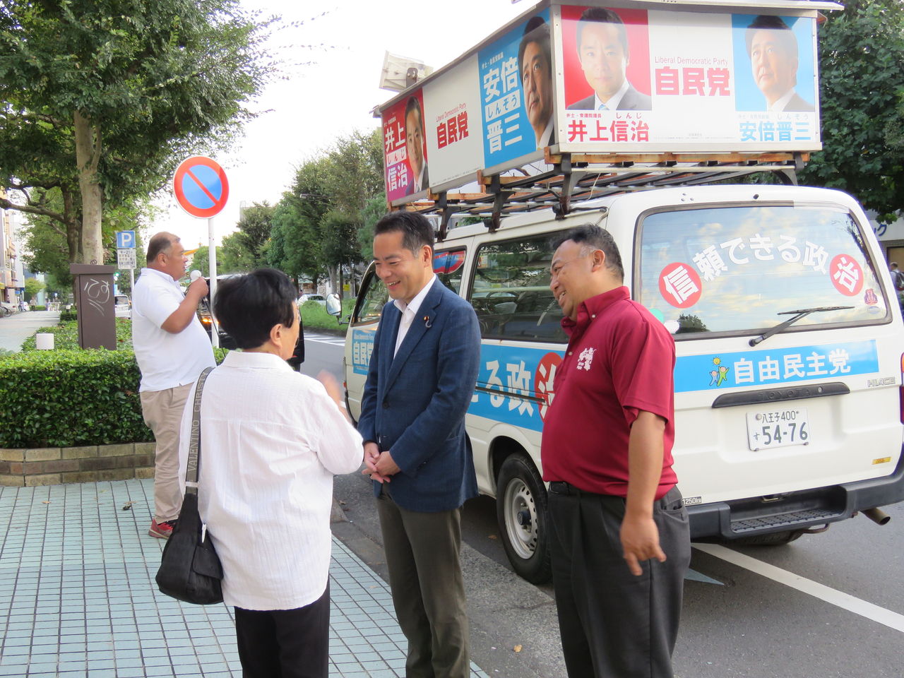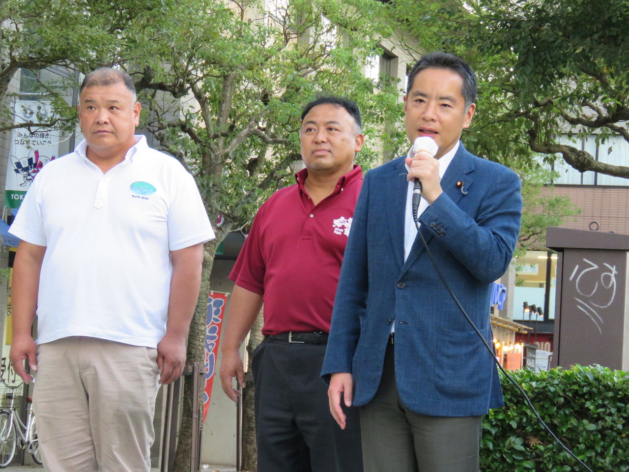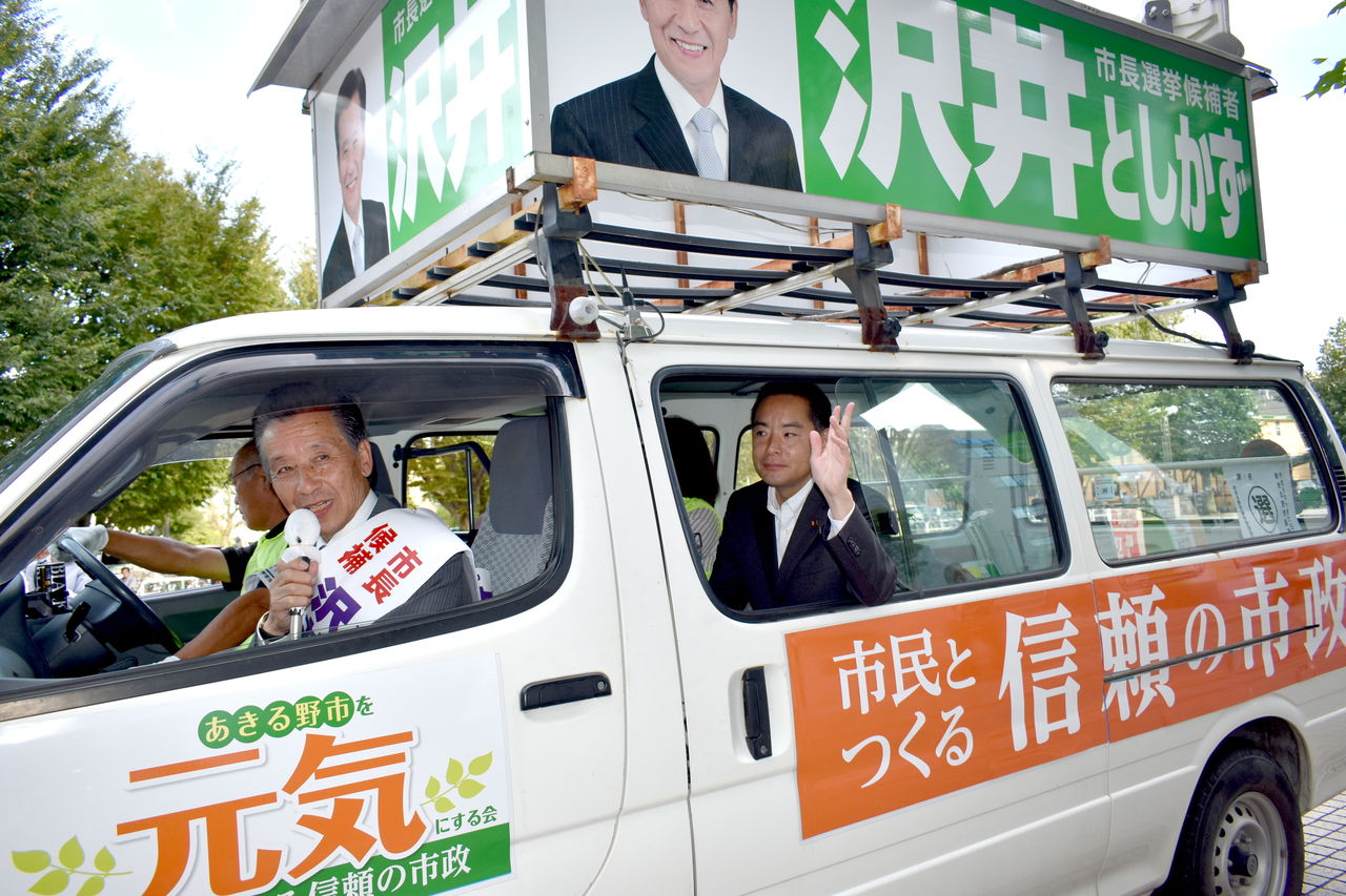 今日は、沢井市長本人の代わりに、中村一広、臼井建市議会議員議員と共に、あきる野市中を回って街頭遊説を行いました。市民のひとりひとりに訴えてまいります。