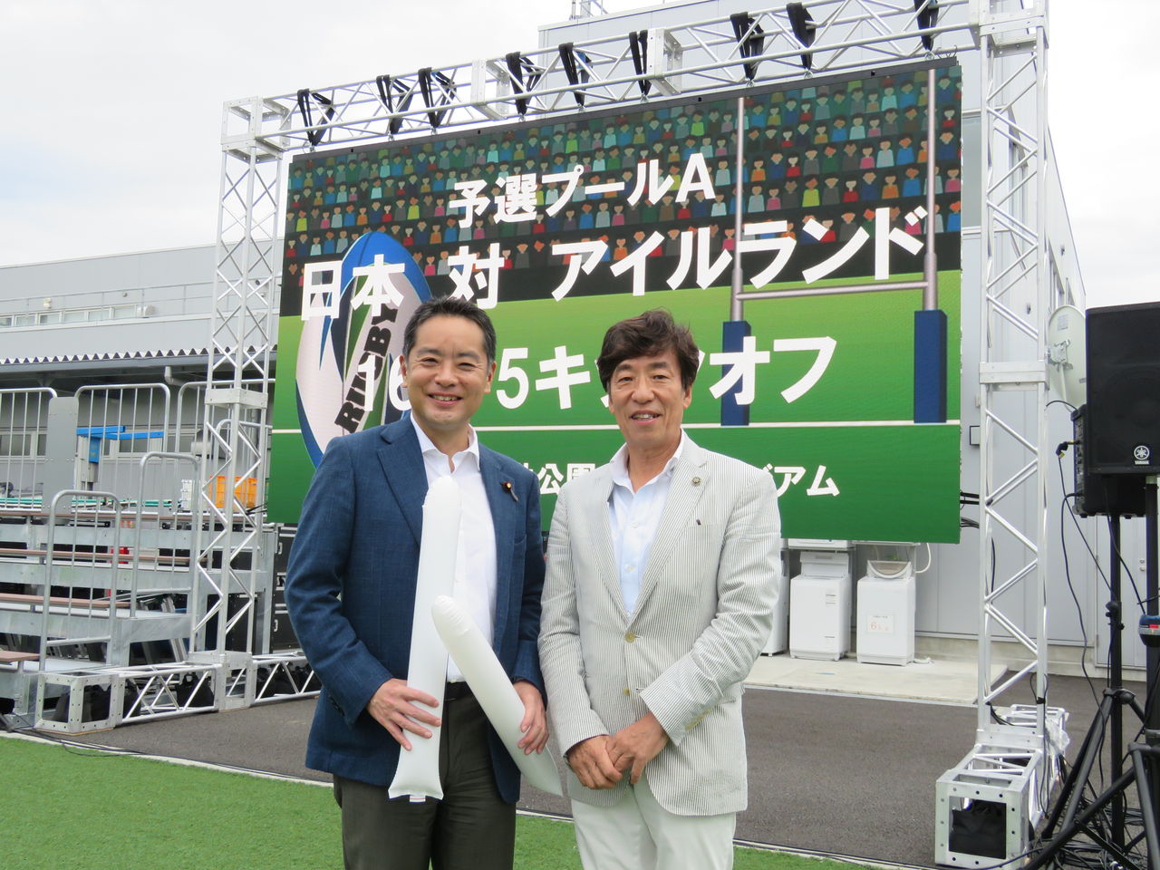 地元・昭島市拝島の栗田工業グランドにおいて、ラグビーW杯2019の二本vsアイルランド戦のパブリックビューイングが開催されました。