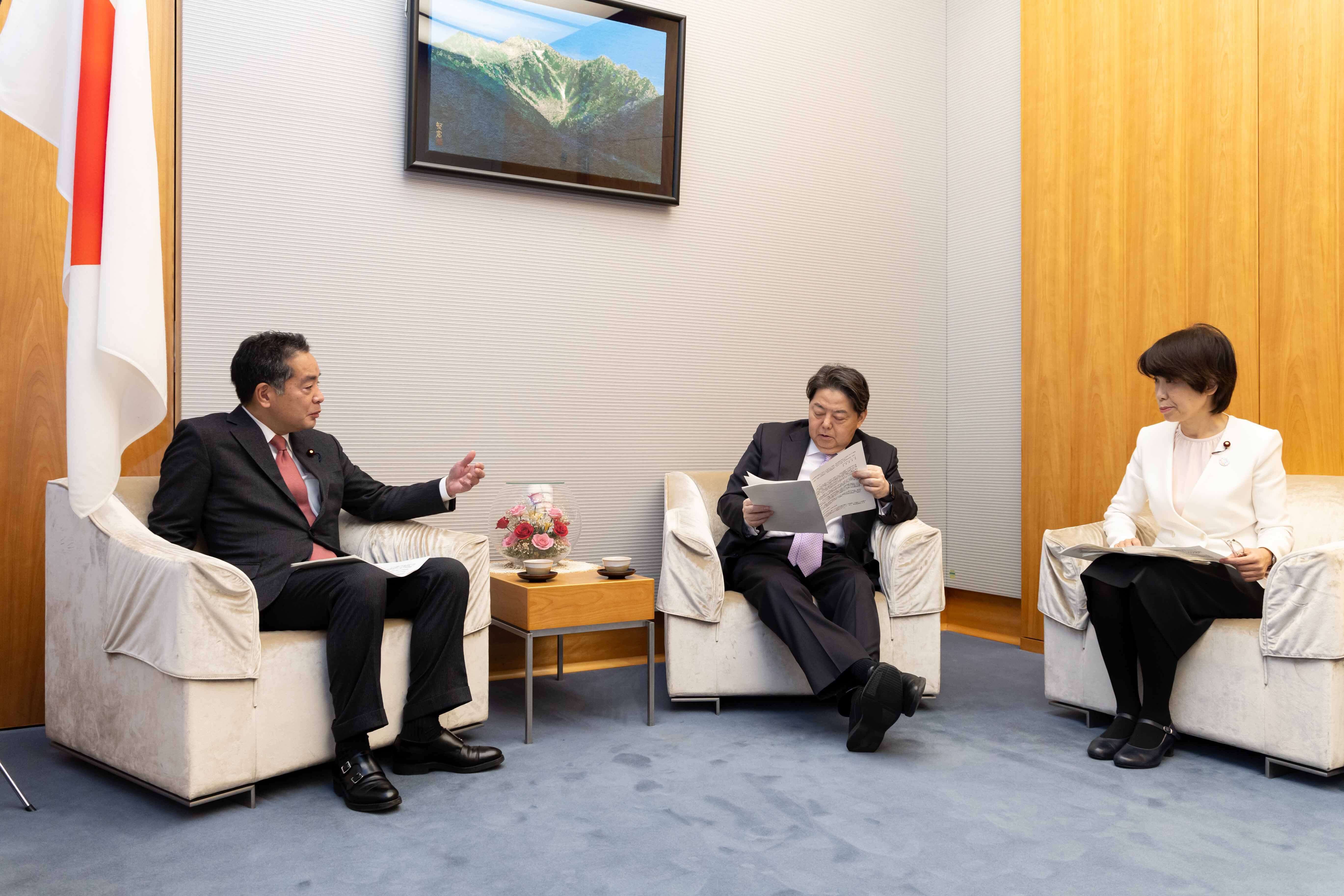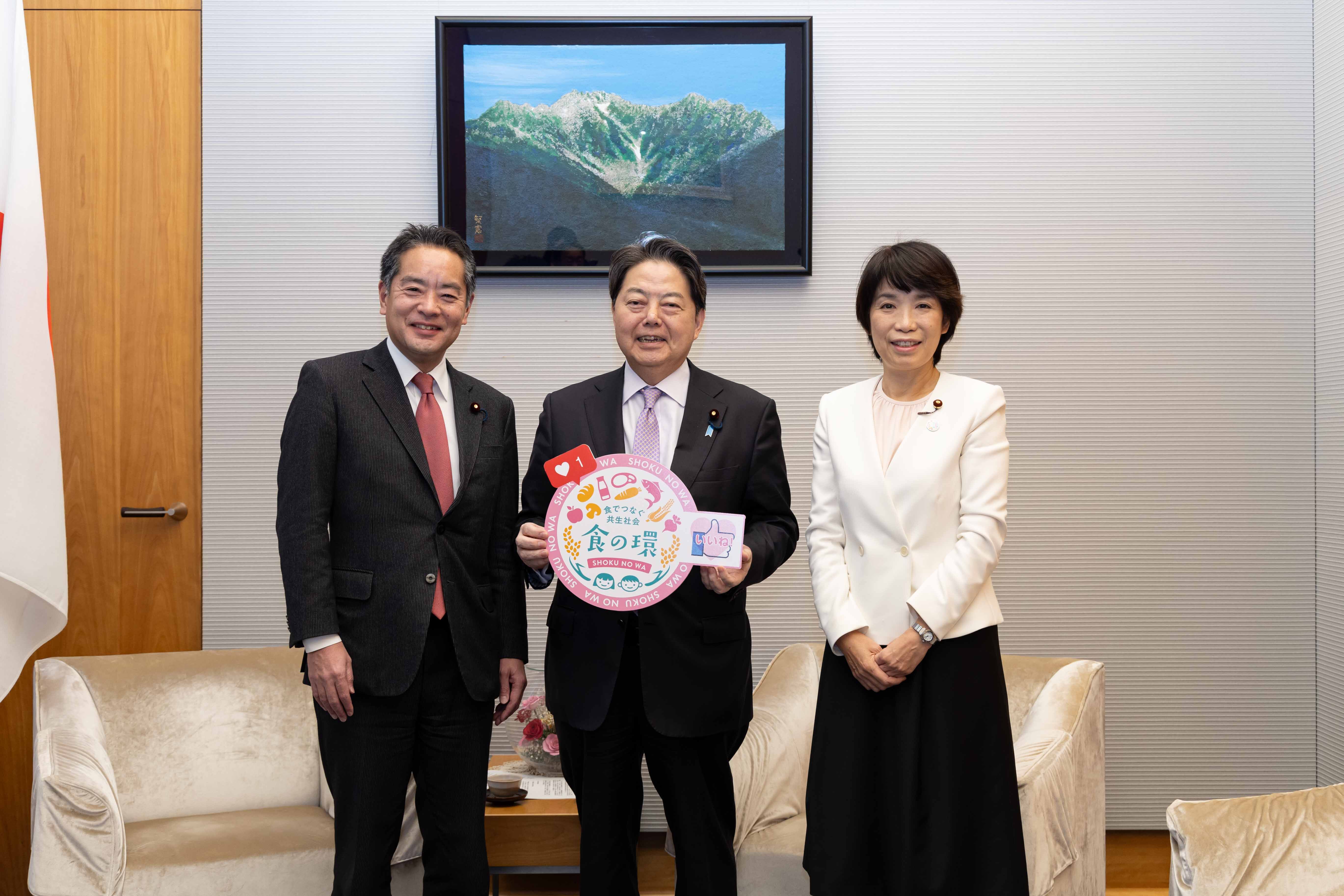 私が会長を務める自民党「環境・温暖化対策調査会」と「消費者問題調査会」「食品ロス削減・食品等寄附推進PT」の合同で「社会情勢の変化に対応した食品ロス削減・食品寄附の更なる促進に向けた提言」を取りまとめました。今日は、総理官邸を訪問し、林芳正内閣官房長官に提言の実施を要望しました。