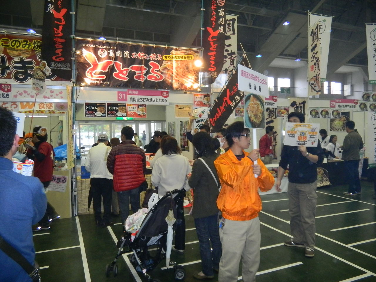 県の主催事業だけあって、お客さんの誘導ライン線引きから、「最後尾」の看板持ちや、