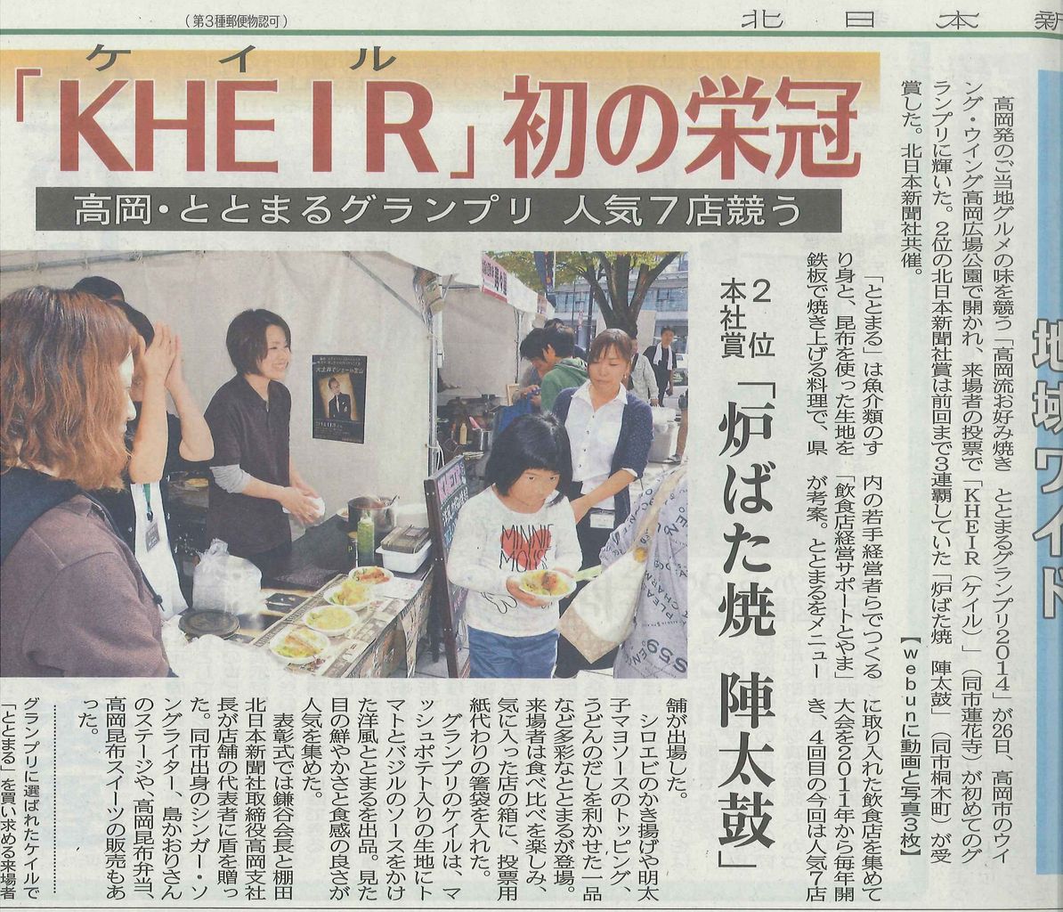 北日本新聞社賞 に 過去3連覇してきていた 陣太鼓 さん