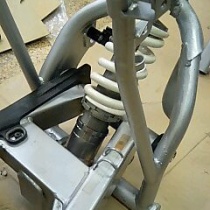 スクランブラーXS650、うまい事RM(79)のステムが付きました。リアサスも何とかなりそうなので、とりあえずサスOKだ〜。