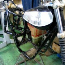 しかしフレームの重いのなんのって。ころがっていたGS750のフレームとくらべても重いんだから困ったもんだ。