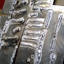 またまたボルケーノさんに仕事の邪魔しに行きました。もとい邪魔しないようにアルミ溶接を習得しようという事なのだ。軽く手ほどきを受けて端材にビビっと溶接練習してみます。