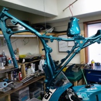 今回はアップハンドルで走ります。でフレームから塗りなおし部品を集めてもう1台制作。