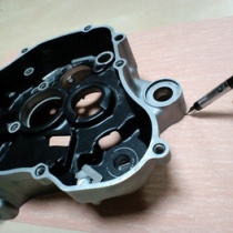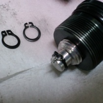 不審に思いながら、ストロークさせて残りのオイルを排出させていると、「カラン」と何かが落ちた。