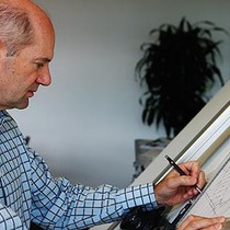 F-1で快進撃を続けているレッドブルの最高傑作RB7を生み出したエイドリアン・ニューウィは、今だドラフターをお使いだそうで。