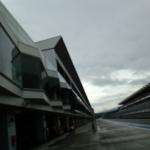 富士スピードウェイはあいにくの小雨模様。
