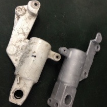古い倒立フォークだとどうしても目立ってしまうブラケットの汚れ。