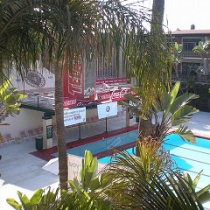 目が覚めたら、昨日は無かったのにオープニングセレモニーのセットが中庭プールに出現。メキシコ人も結構働きます。ちょっとムードでてきたかな。
