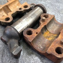 古い倒立フォークだとどうしても目立ってしまうブラケットの汚れ。