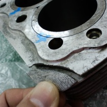 歪が怖いし、古いシリンダーなので冷めた時にクラックが入りやすいので溶接ではなく、ジーナスで治します。