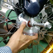 何とハブは削りだしの自作。ここまで出来たら旋盤も喜んでるよね。