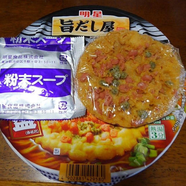2018年03月31日 明星 旨だし屋 天ぷらそば 大盛(東向け) なんかこのパッケージ、緑のたぬきを意識してないか・・・いや明星だからどん兵衛の方か?しかもこれ西向けと東向けがあるみたいだ。西日本のそばつゆって透明なんなんかなまあ、不味いわけないっすヨネ、美味しく頂きました。 「明星」カテゴリの最新記事 タグ :明星旨だし屋天ぷらそば大盛(東向け) < 前の記事