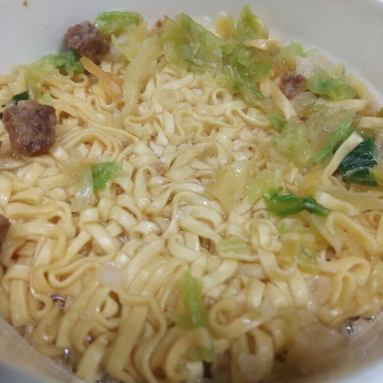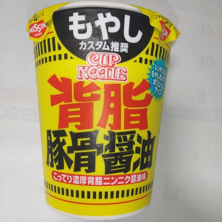 2026年01月08日 日清 カップヌードル 背脂豚骨醤油 ビッグ よくあるスタミナ系豚骨醤油ラーメンそのフレーバーにカップヌードルの麺をいれましたって感じなので若干麺が合わない気がしないでもないがスープがそれを救ってくれる。もやしを推してるので容器を移してもやし乗っけました水分切るの忘れててちょっと薄まってしまいましたがもやしがめっちゃスープに合って美味しいw タグ :#日清#カップヌードル#背脂豚骨醤油#ビッグ
