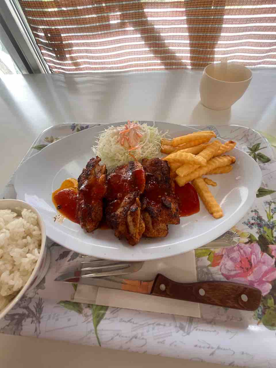 どーも、「マイハウス」という、アメリカっぽい食堂です。ちょっと前までは観光客の人たちで、いっぱいだったのですが、この日はお昼時なのに自分1人です(◎_◎;)店員さんも外人ばっかりに代わっていました(;'∀')料理ですが、明らかに量が減っています( 一一)