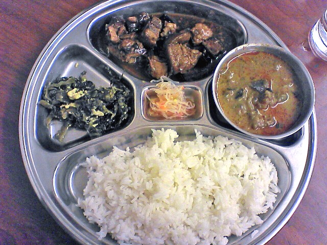 そらそうだ、白粥だもの。お姉さんにナンプラーをもらい、好きに調味させつつ、いろいろつまんで気づけば満腹になりました。ごちそうさま〜。