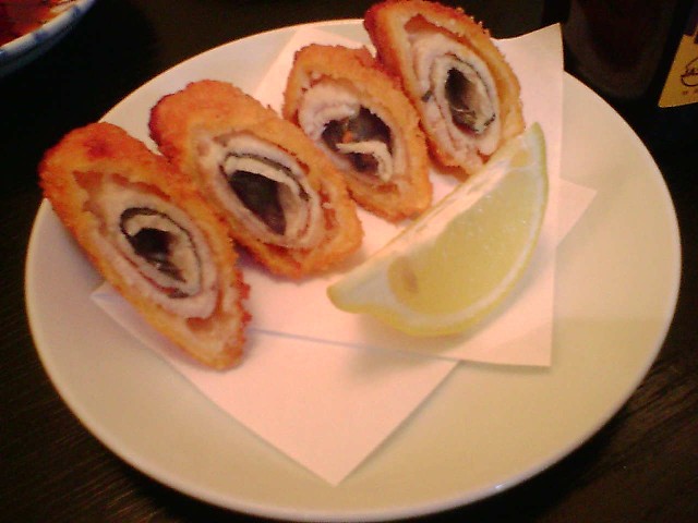 何杯かおかわりした後に頼んだ、チーズチキン大葉揚げ(400円)。酔ってブレブレの写真じゃよく分からないかもしれませんが、しっかり手作り、揚げたてアツアツ。さっぱり鶏肉にとろーり濃厚チーズ、アクセントの大葉がよい感じ。レモンをひと絞りするだけで美味しく頂ける。ココの料理人の方、デキると見た。小上りで飲んだせいか、かなりまったりしてしまった。アメ横界隈の賑々しさから開放されて、のんびり飲むのによさげな穴場かも。また寄らせてもらいます。