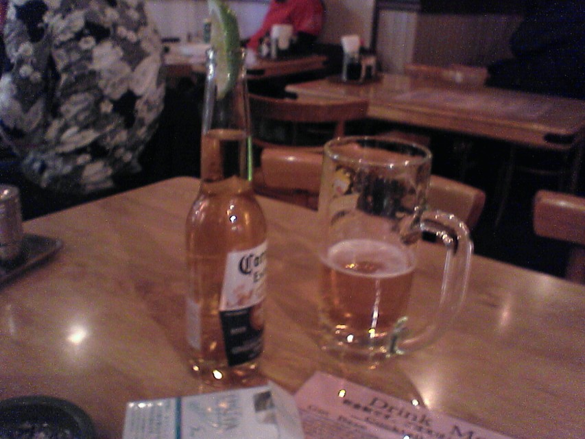 ライブを演る知人にあいさつして、カウンターで飲み物と食べ物を注文。ライブハウスっぽく、会計はキャッシュオンデリバリー。席に腰を落ち着け、コロナ(560円)の瓶にレモンを押し込みグビリとあおる。うーん、うまい。やっぱりコロナはライブやイベントで飲むに限る。ためしに家で飲んみたこともあるが、ちっとも美味しくなかった。