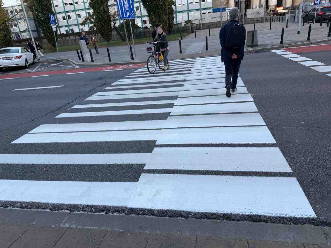 全ての横断歩道ではありませんがこんな洒落た横断歩道も有りました CDのジャケットとかに使えそうですね