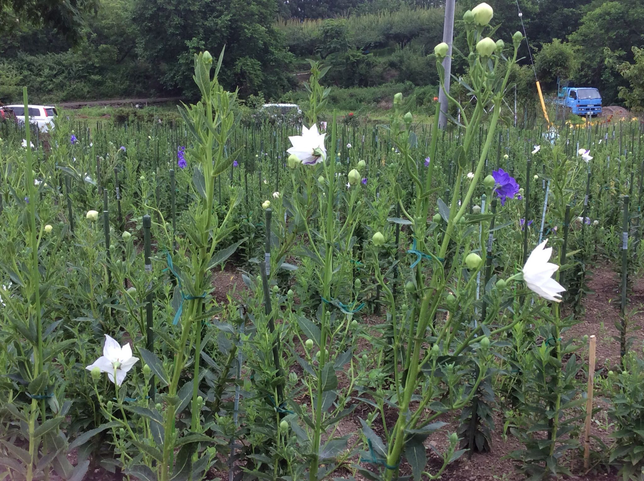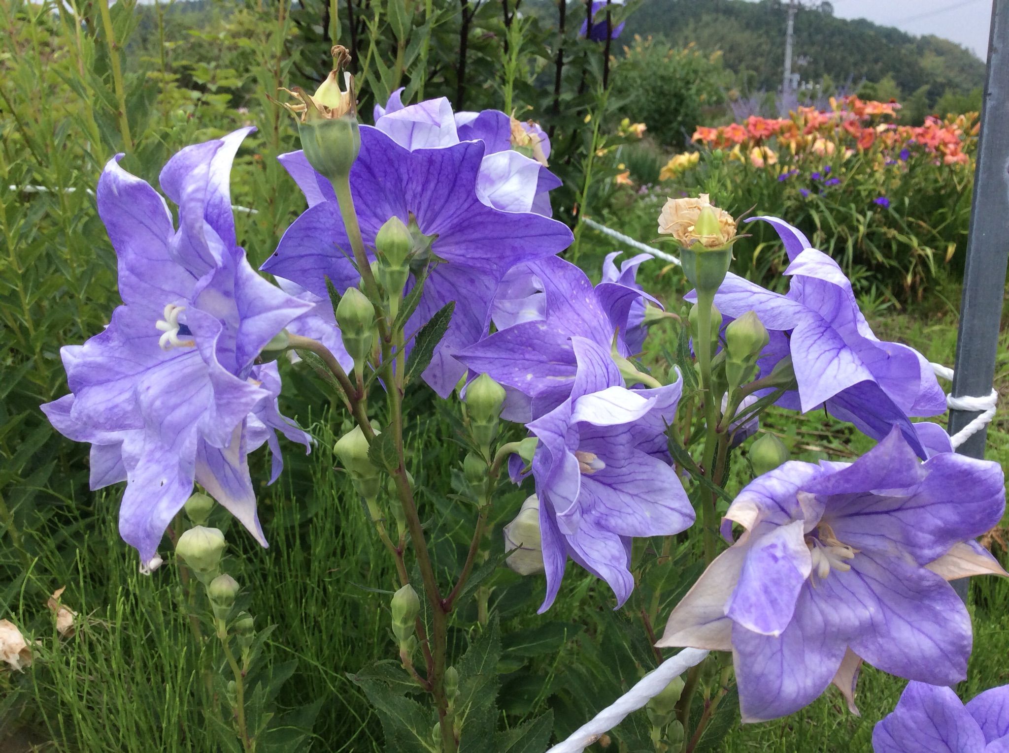 ヘメロカリス6分咲きーキキヨウも大分咲いて来ました