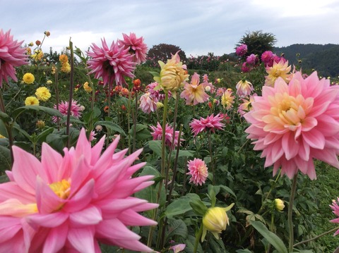 穏やかな日和で、ダリアも綺麗です、お出かけください。