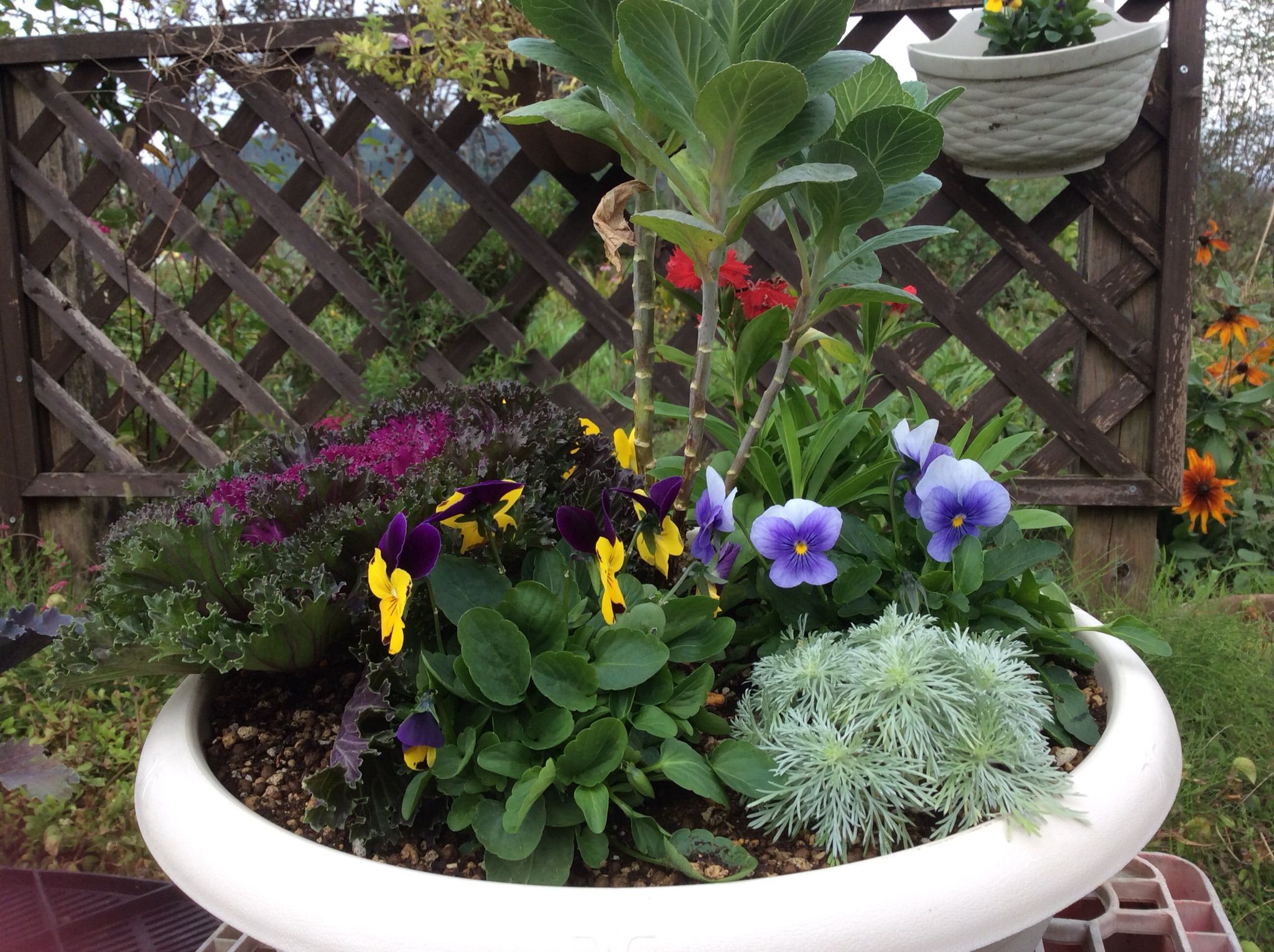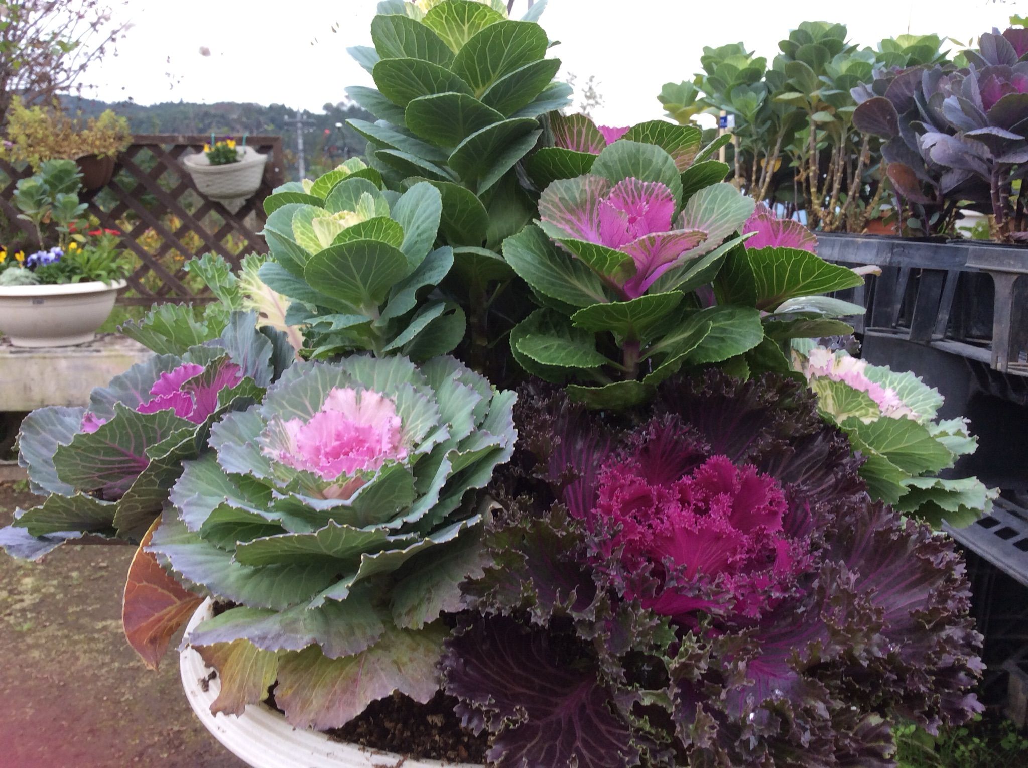 ダリアの花は一段と鮮やかに咲いています。冬の寄せ植えも販売始めました。
