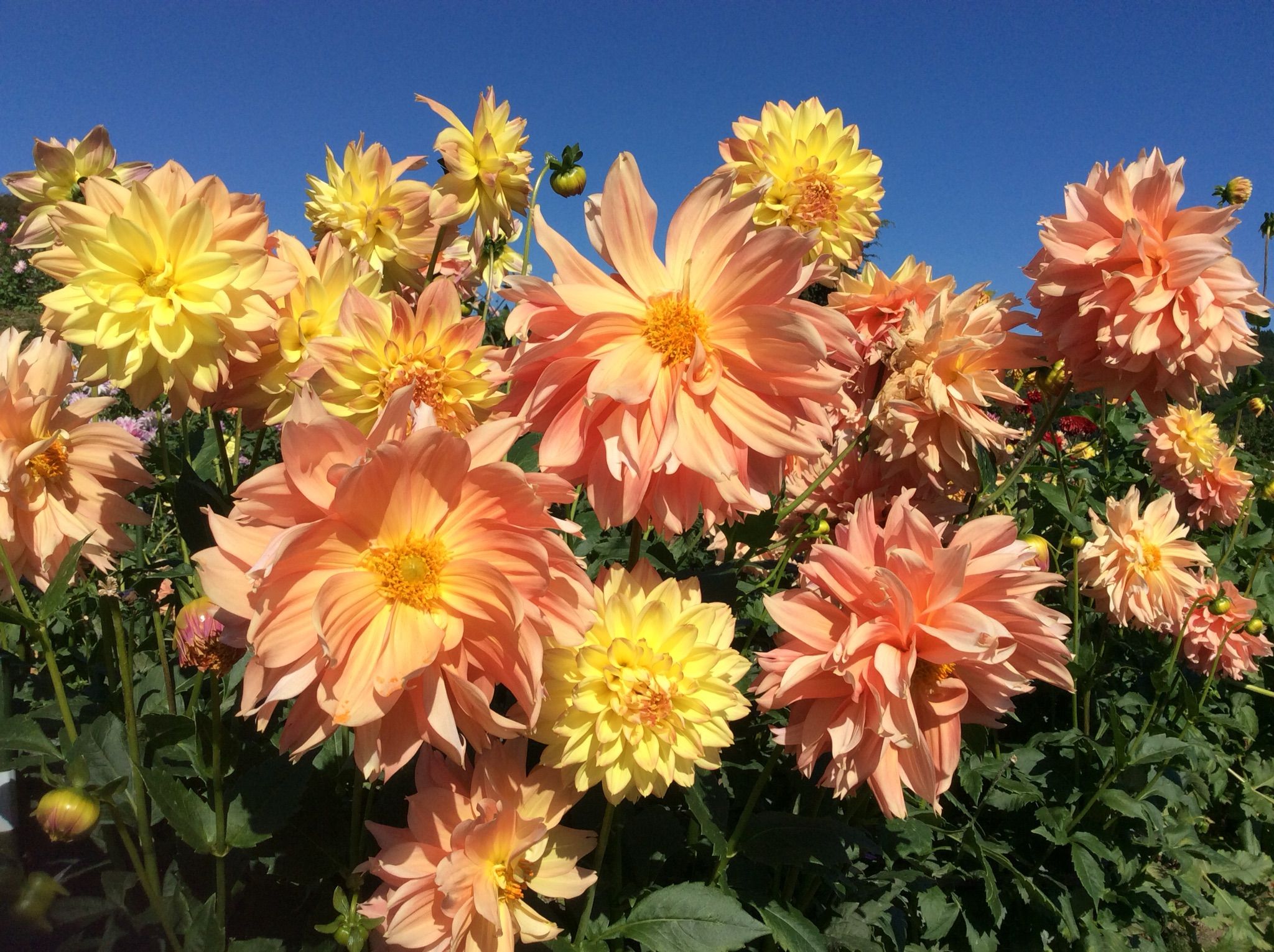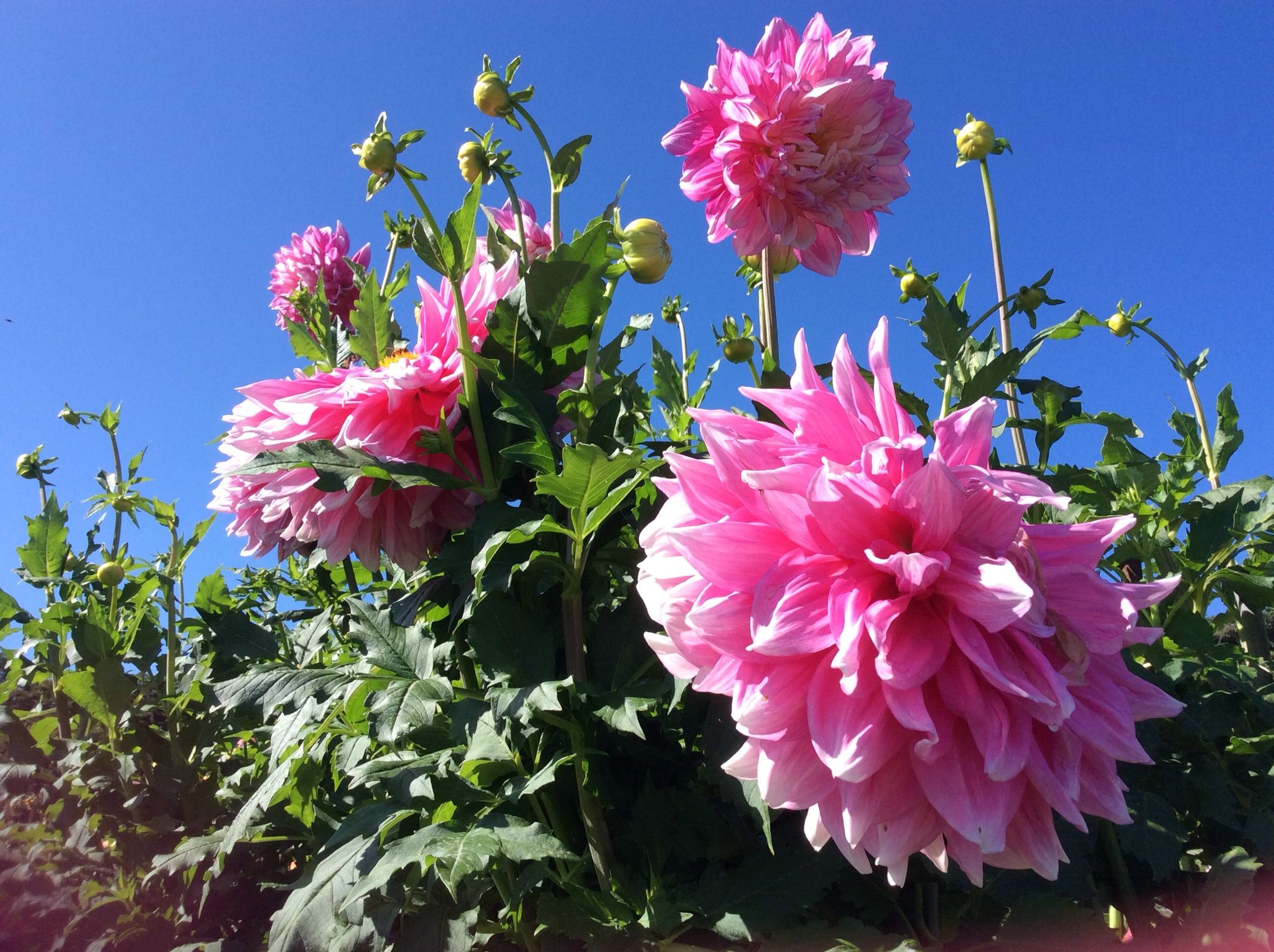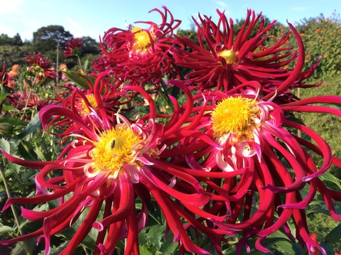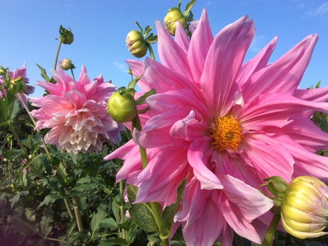 今日は朝から快晴気温も高くお花見日和です、ダリアの花は元気いっぱい咲いています。