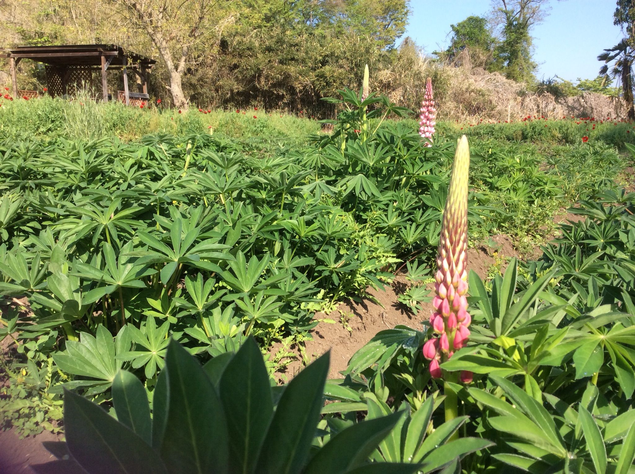 ルピナス、ピエロ、花菱草、アイリスも一つだけ咲来ました。いよいよ花々の競演がまじかにになってきましたお楽しみに、、