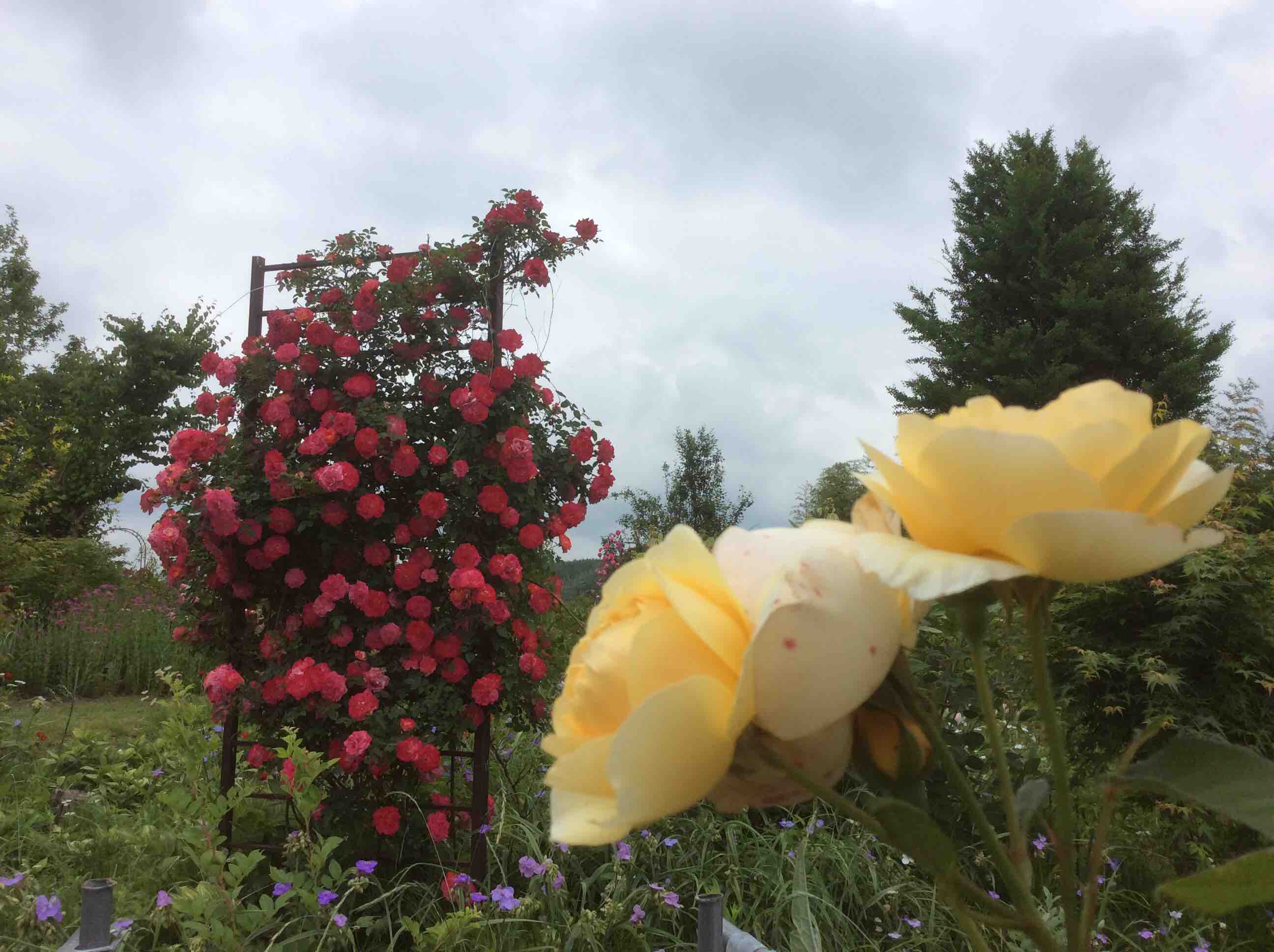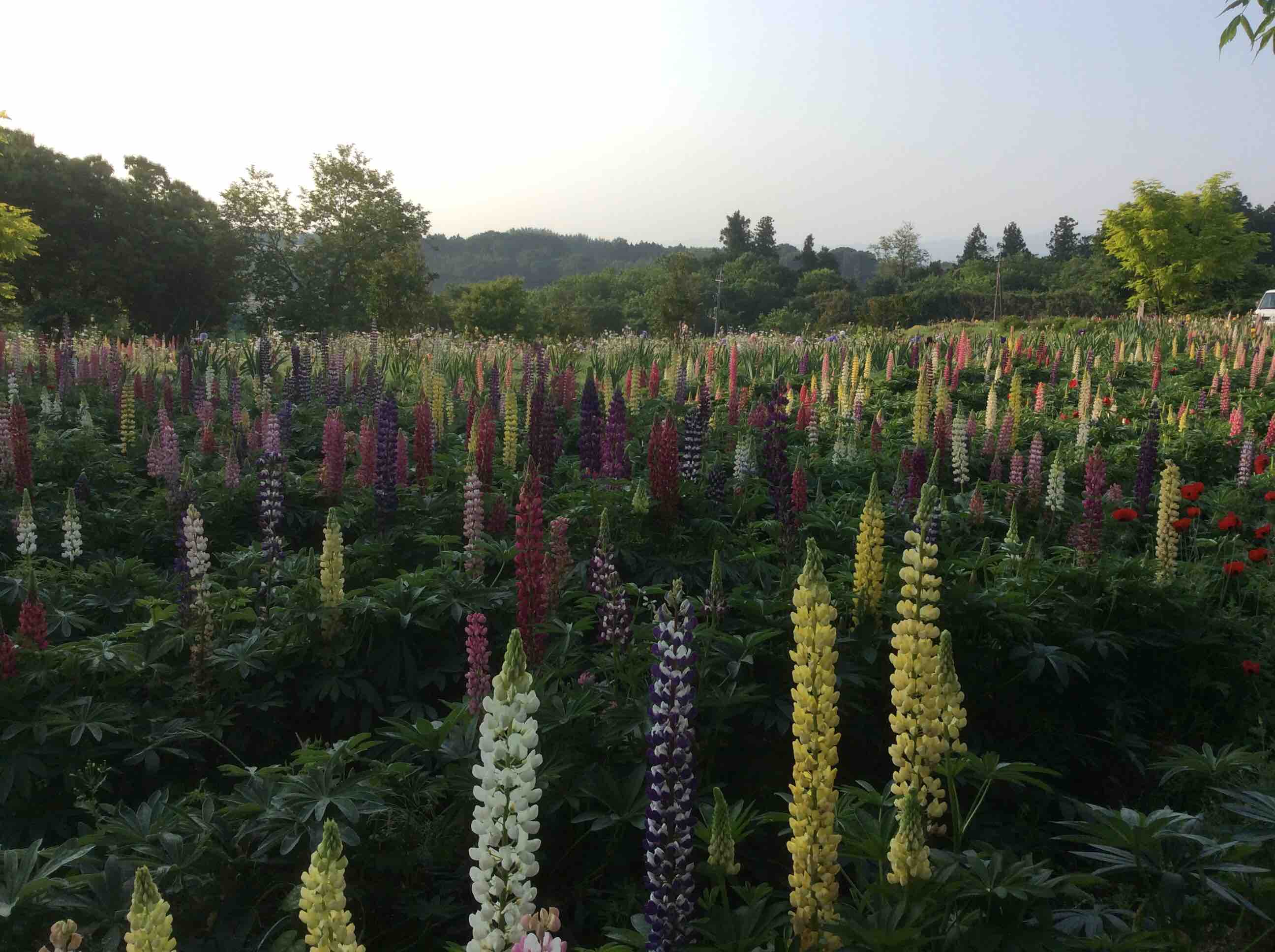 雨上がり園内では、ルピナス、薔薇、ポピー綺麗に咲いています。