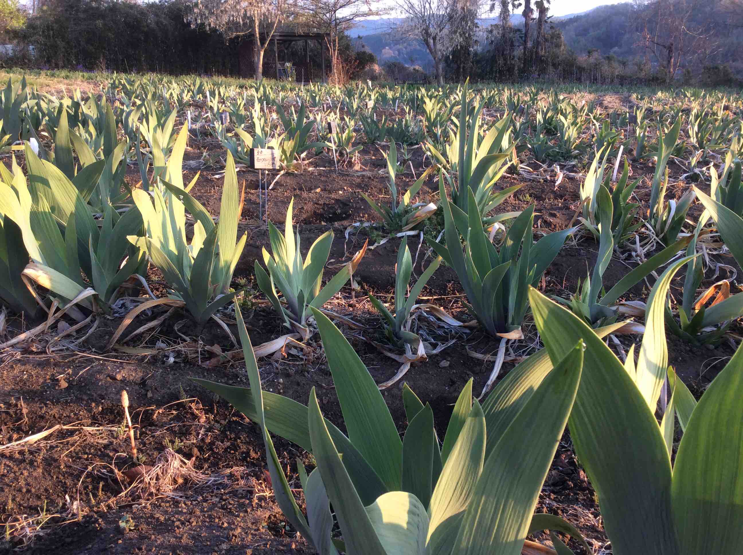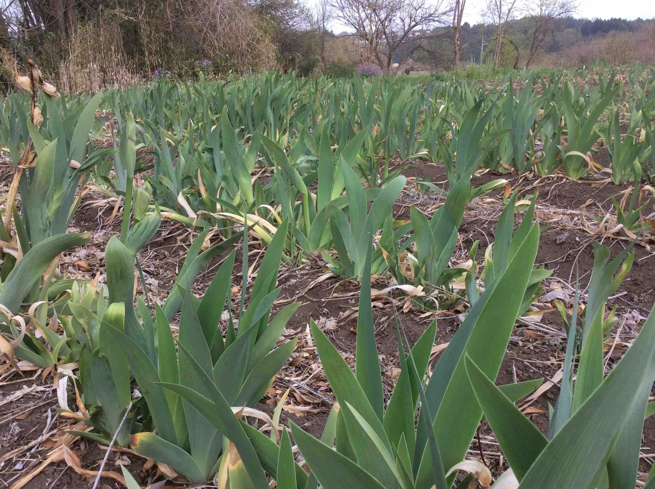 アイリスの初花が咲きました。この所の暑さでつぼみが急に伸びてきました。