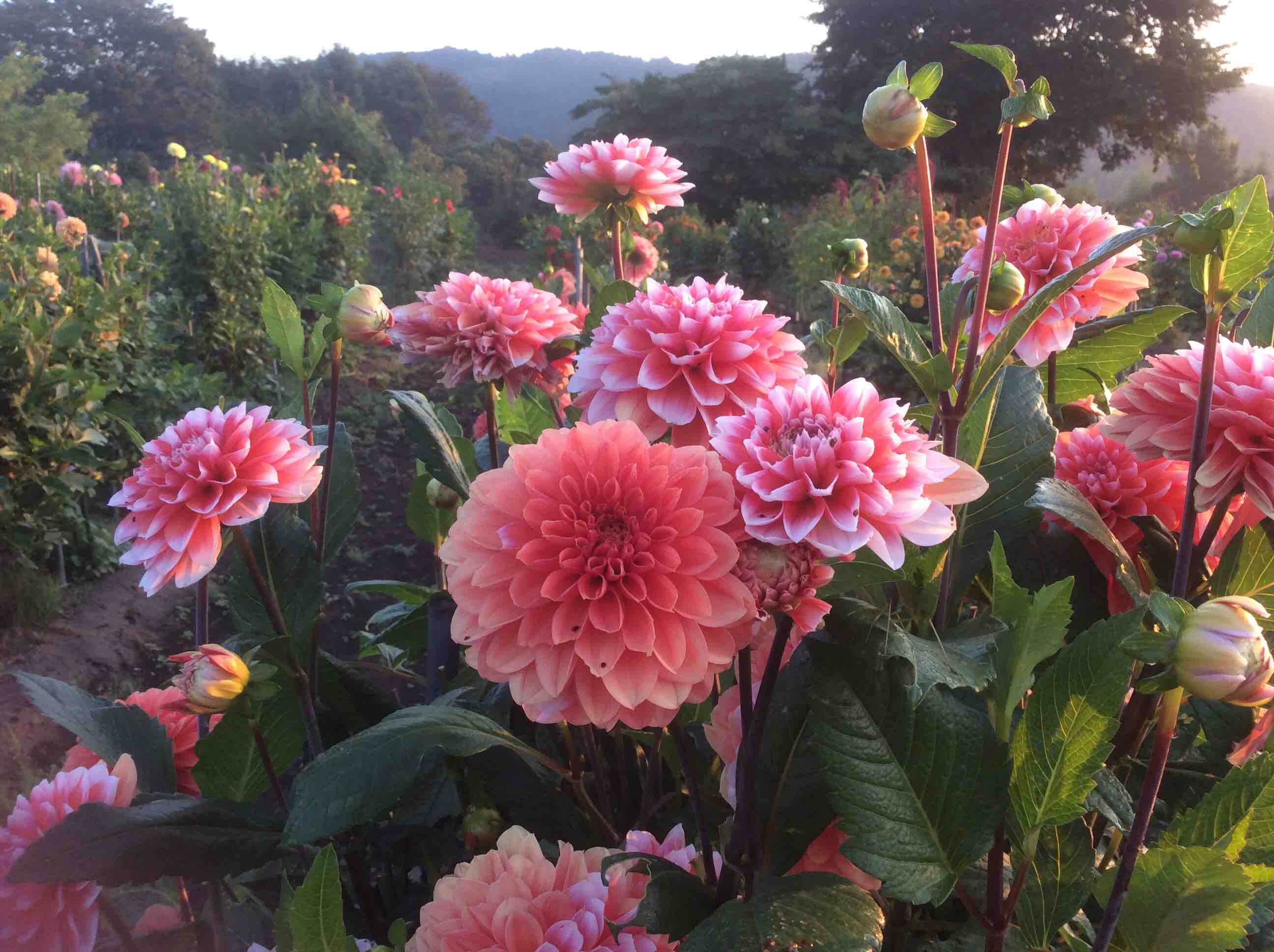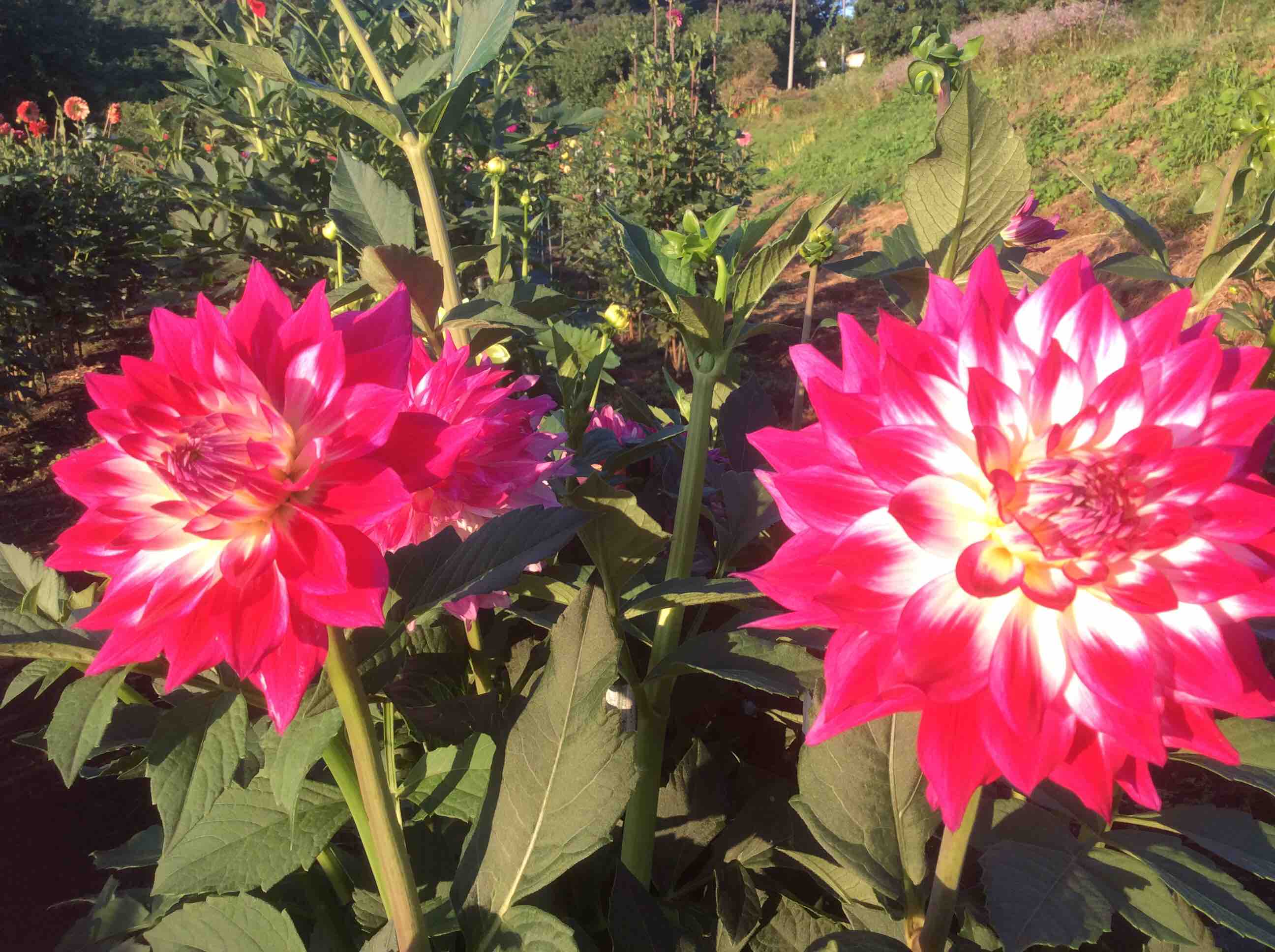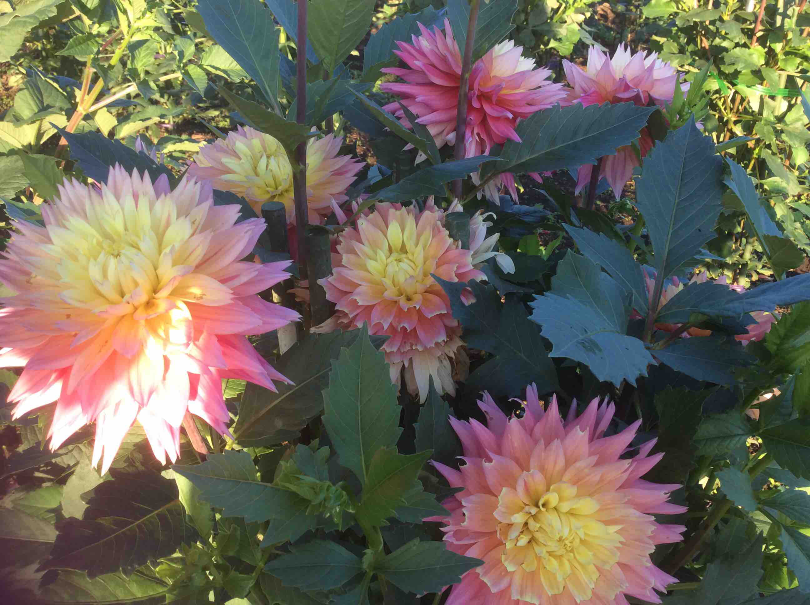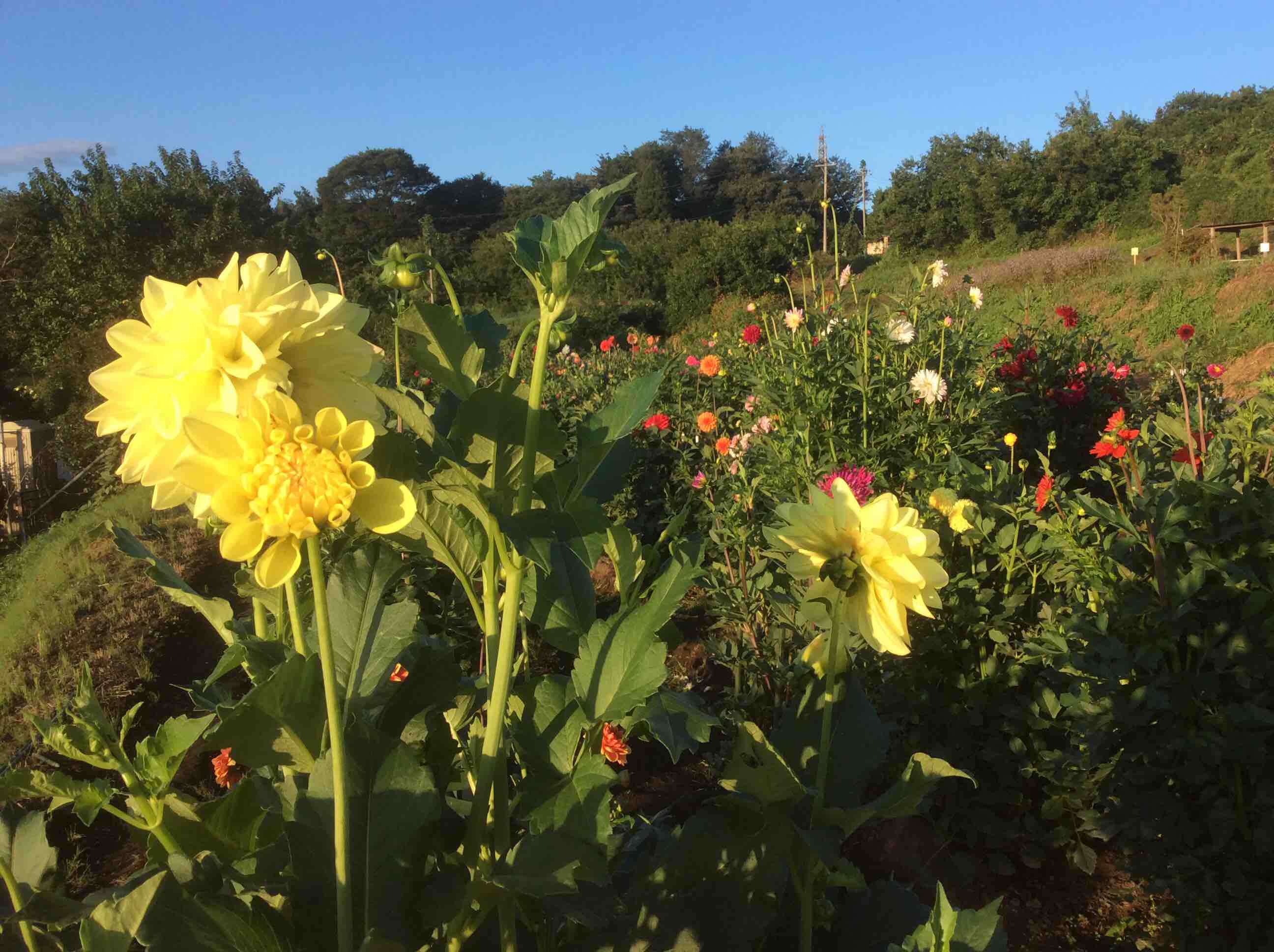 朝日に輝いてダリアの花は素晴らしく綺麗です見頃になりました。