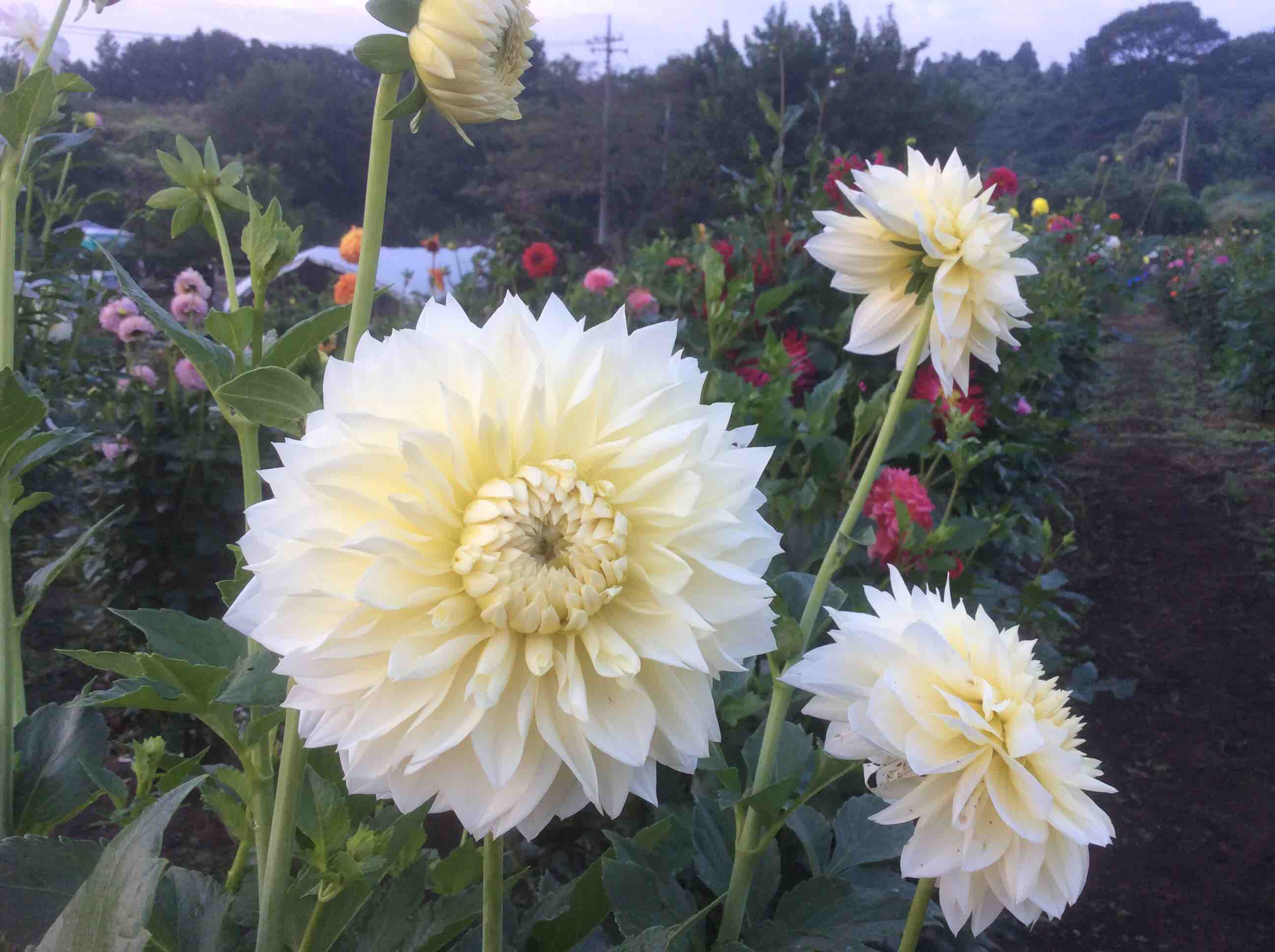 大輪のダリアが数多く咲いてきました。只今400品種程咲いています。