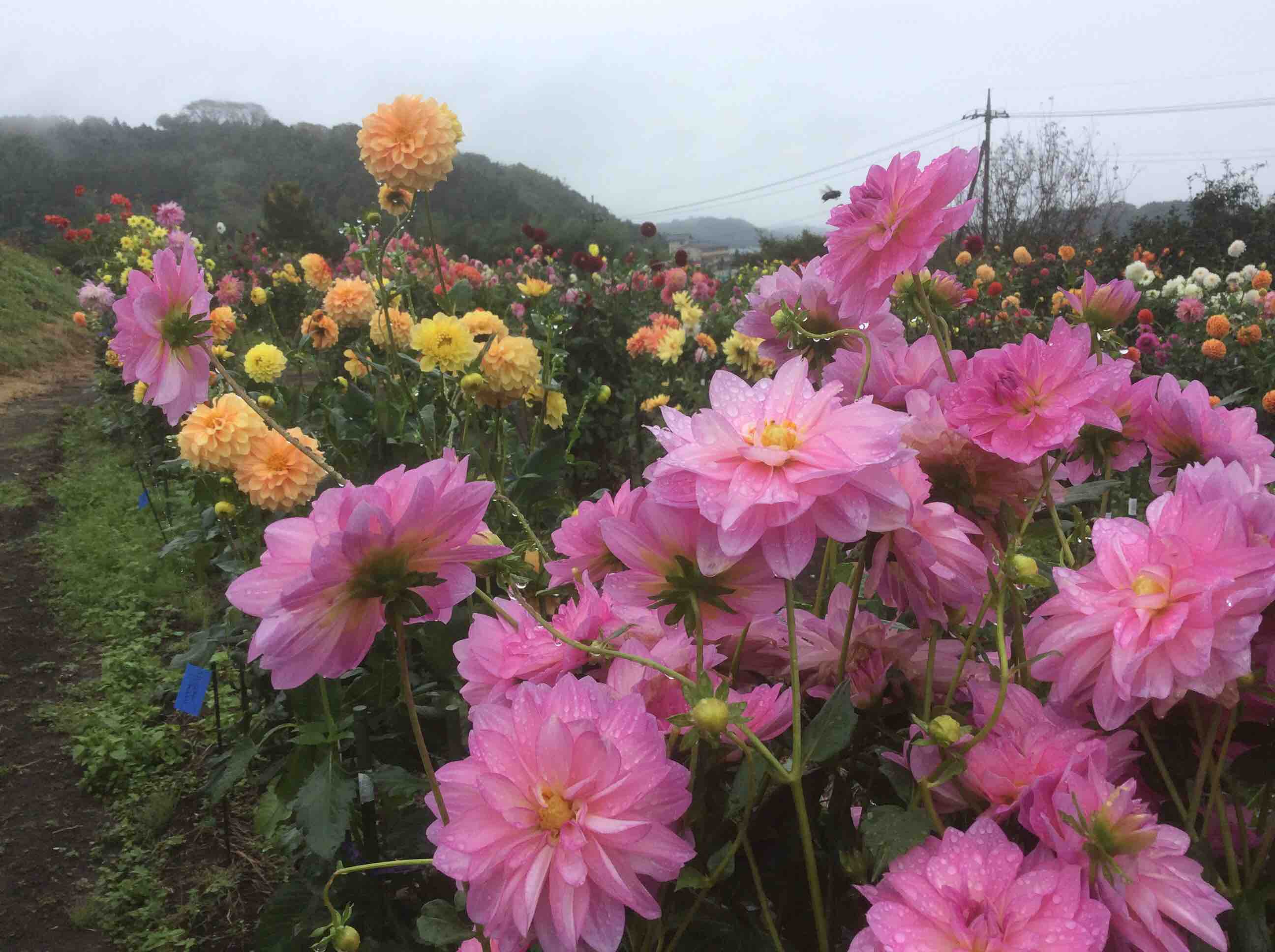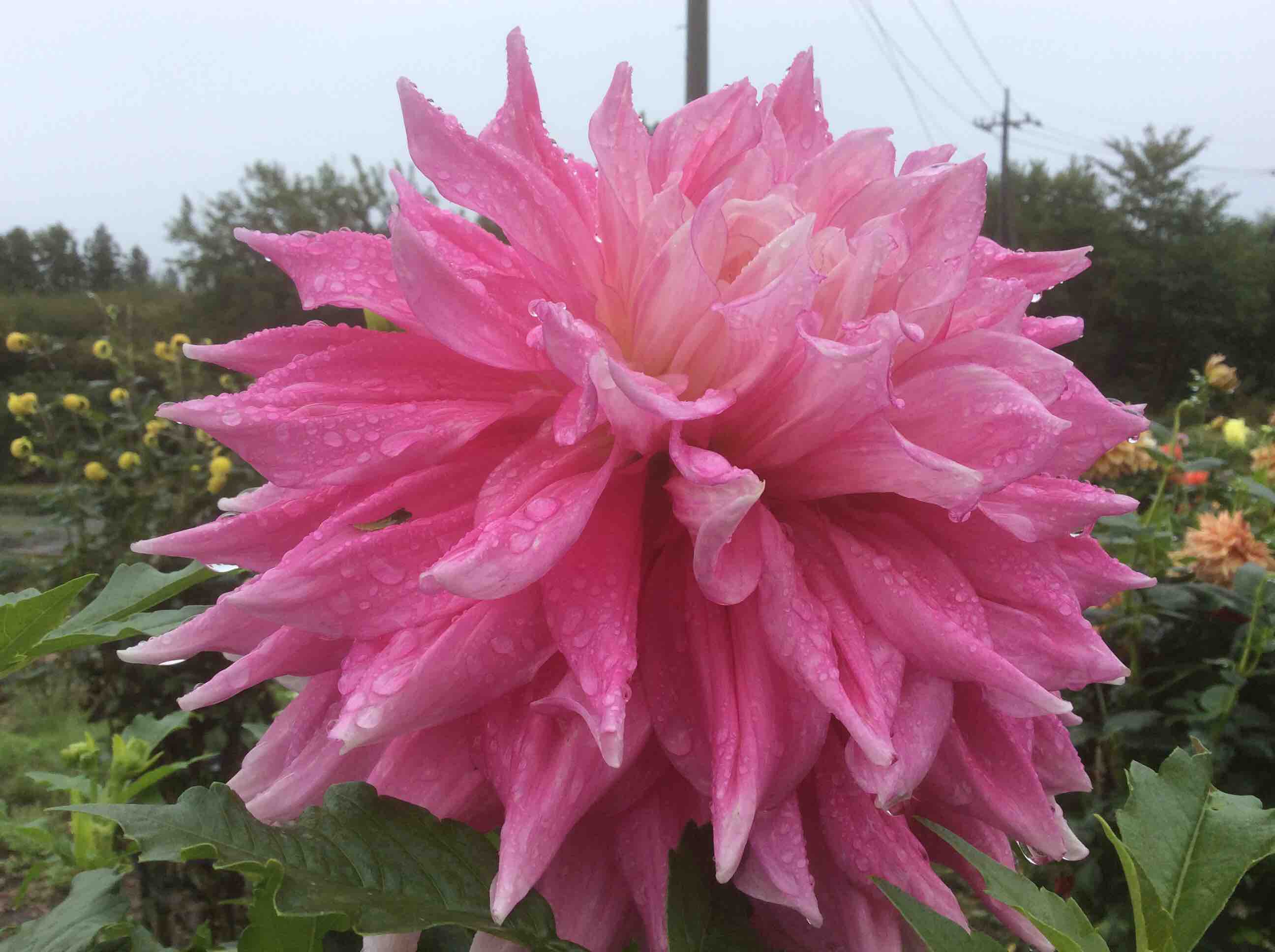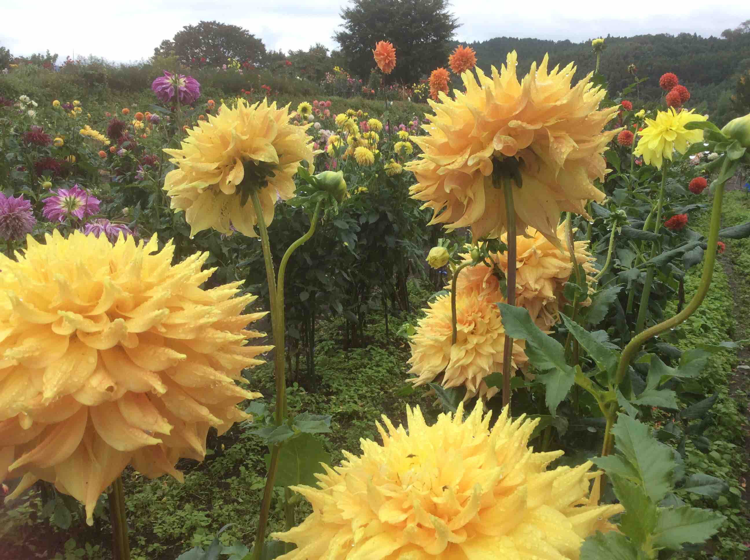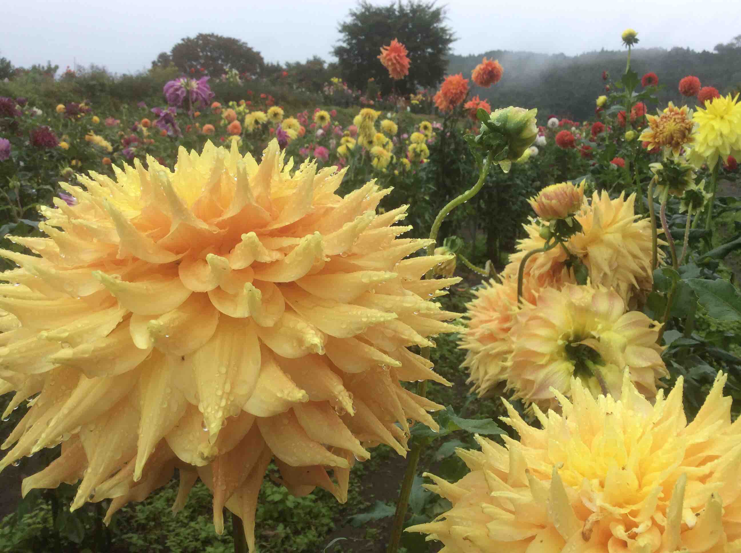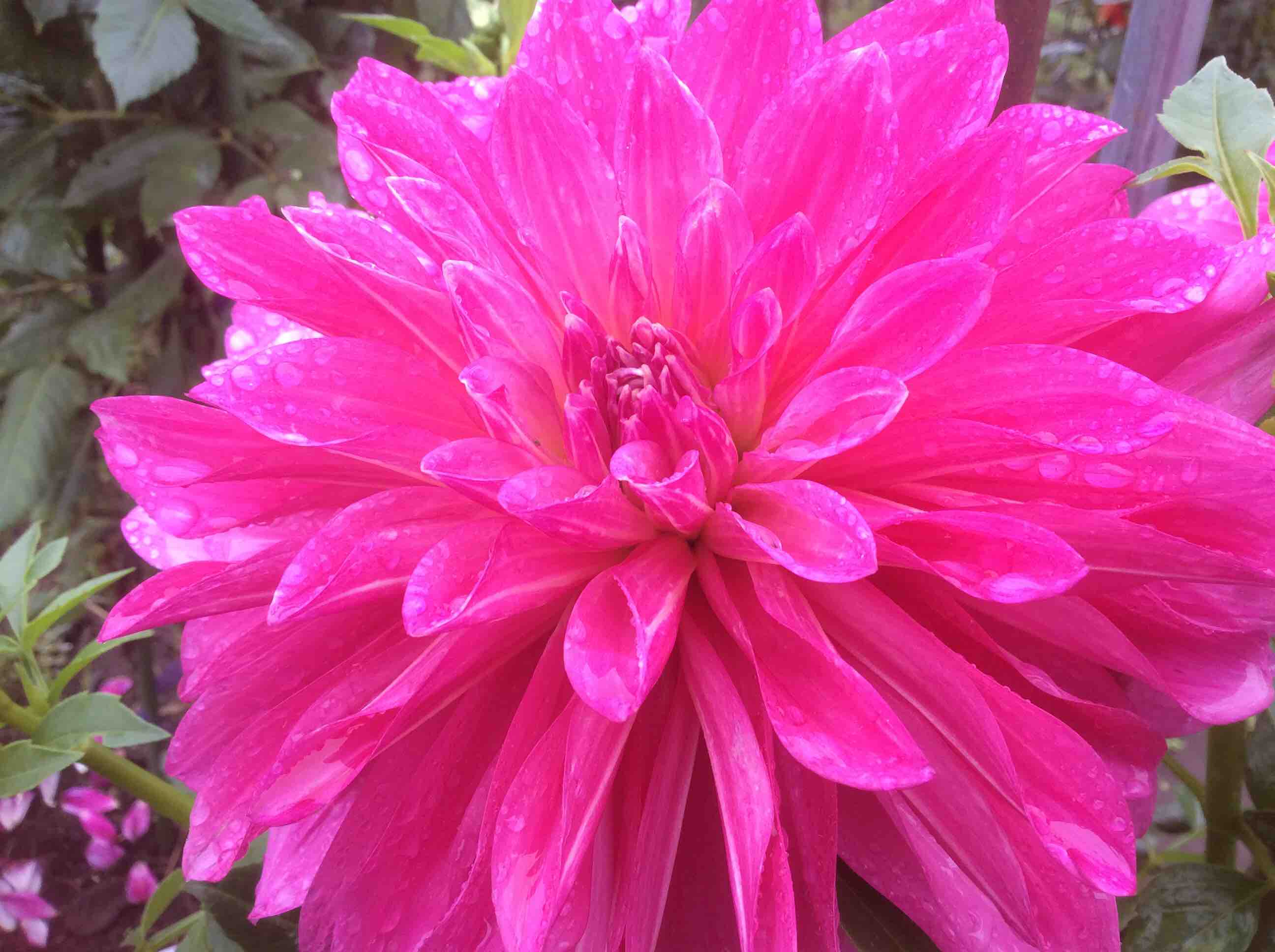 雨にも負けずダリアの花は綺麗に咲いています。