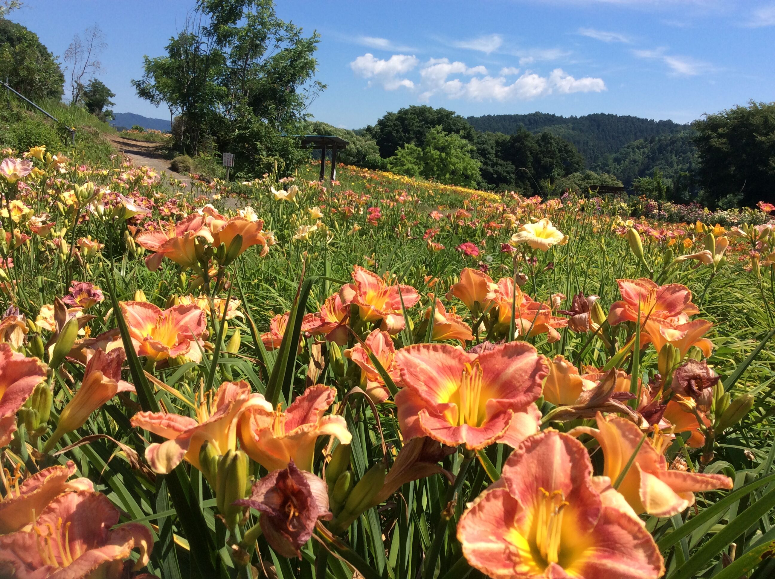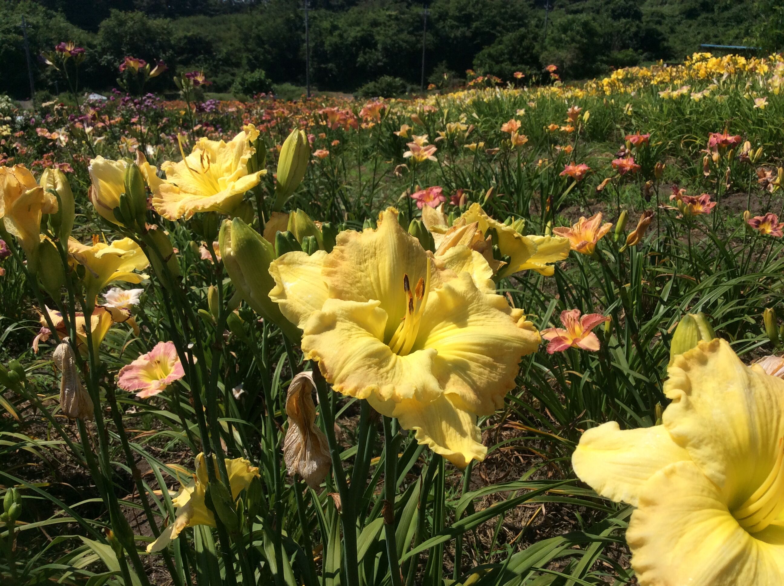 今日も暑いですがヘメロカリス元気に咲いています、只今7分咲きです。