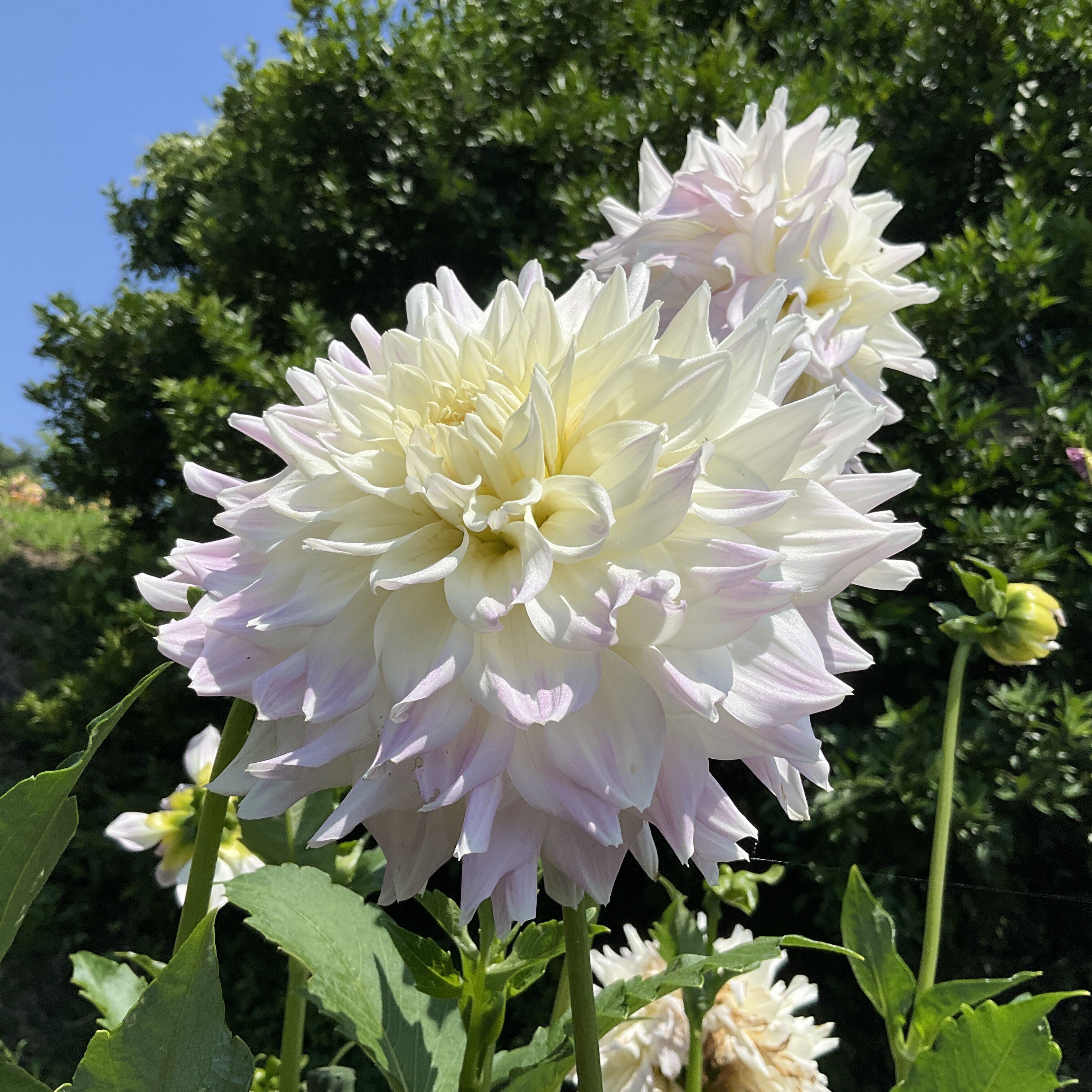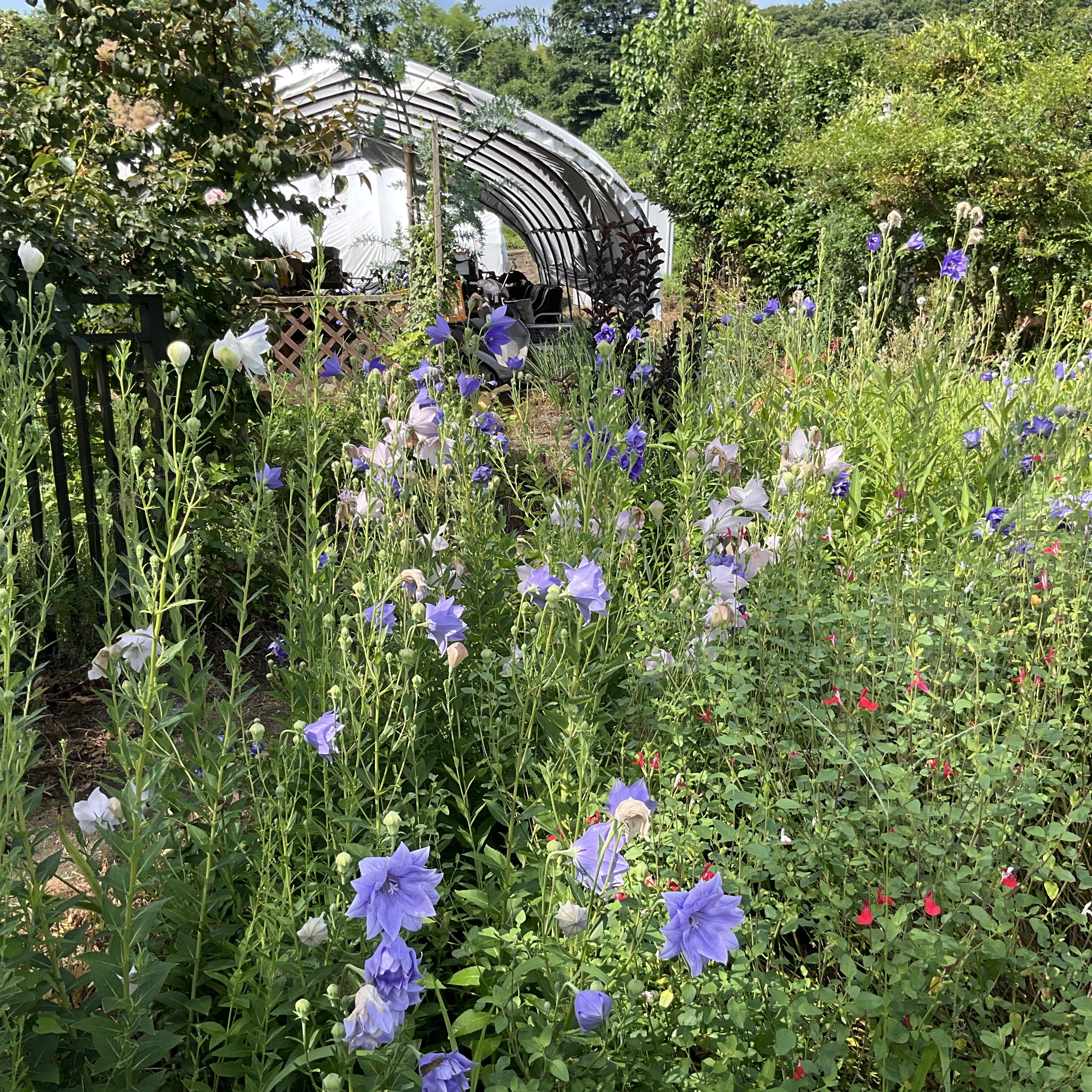 八重咲きキキヨウ咲き始めました。西洋 にんじん木咲いています。ダリアは暑さにも負けず、きれいに咲いてます。