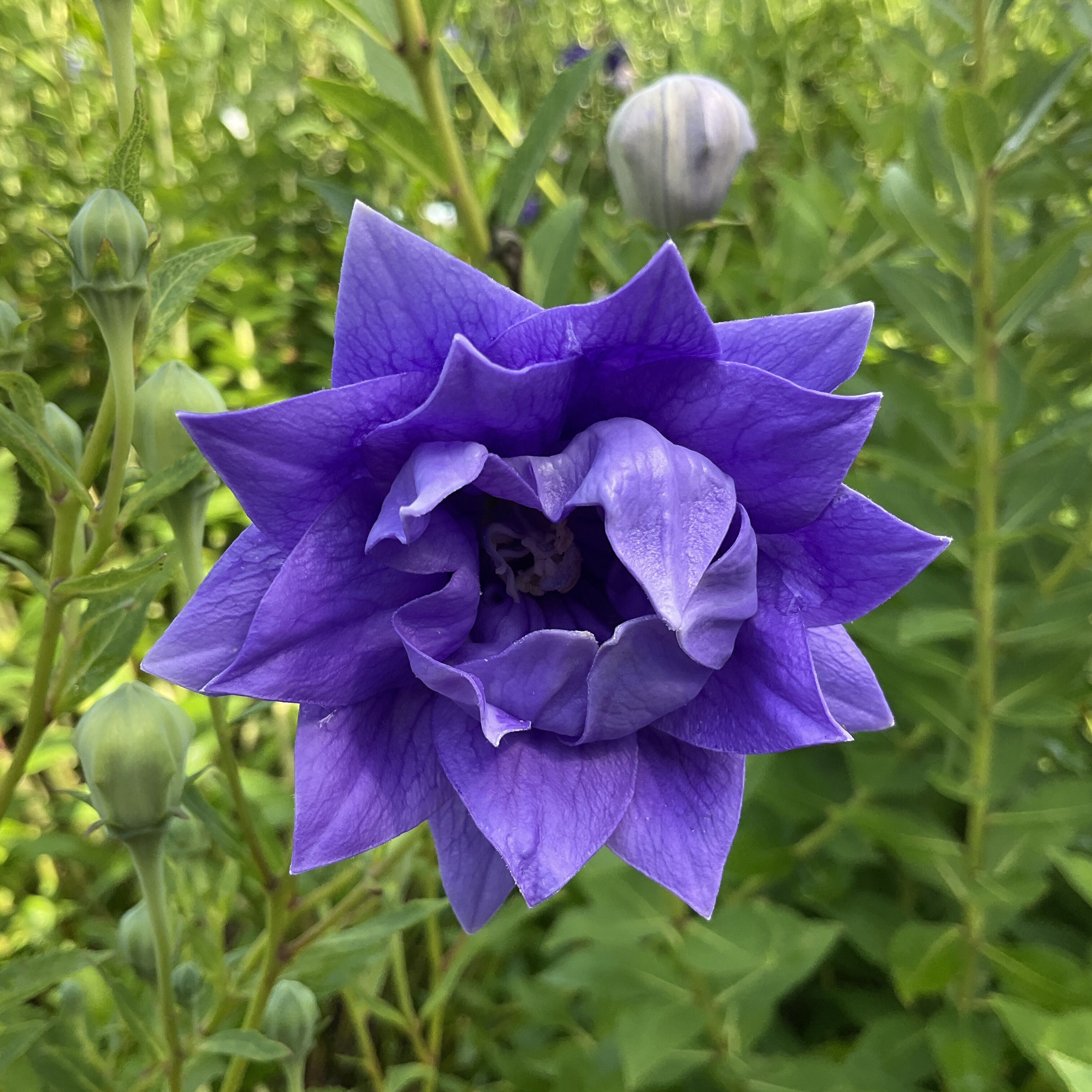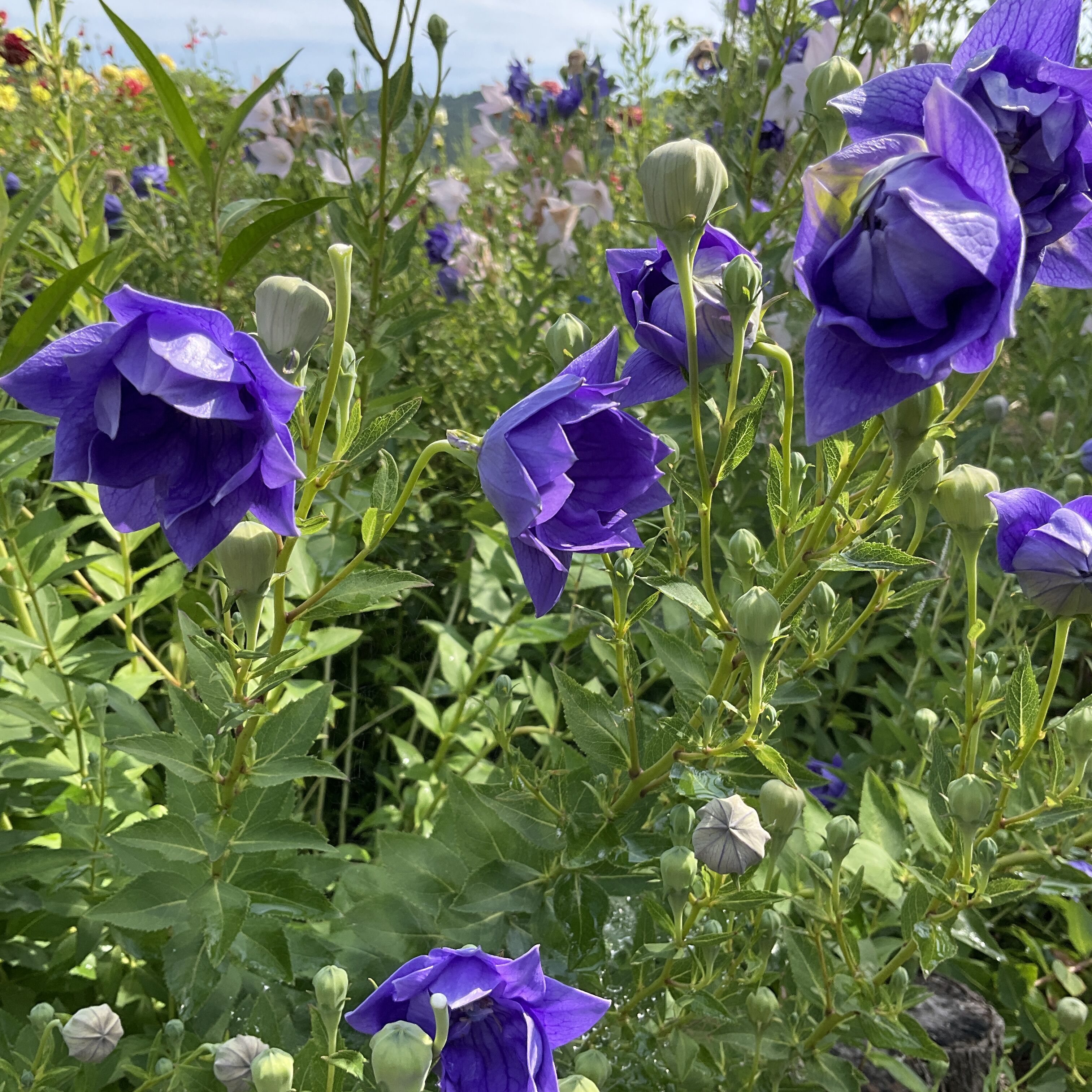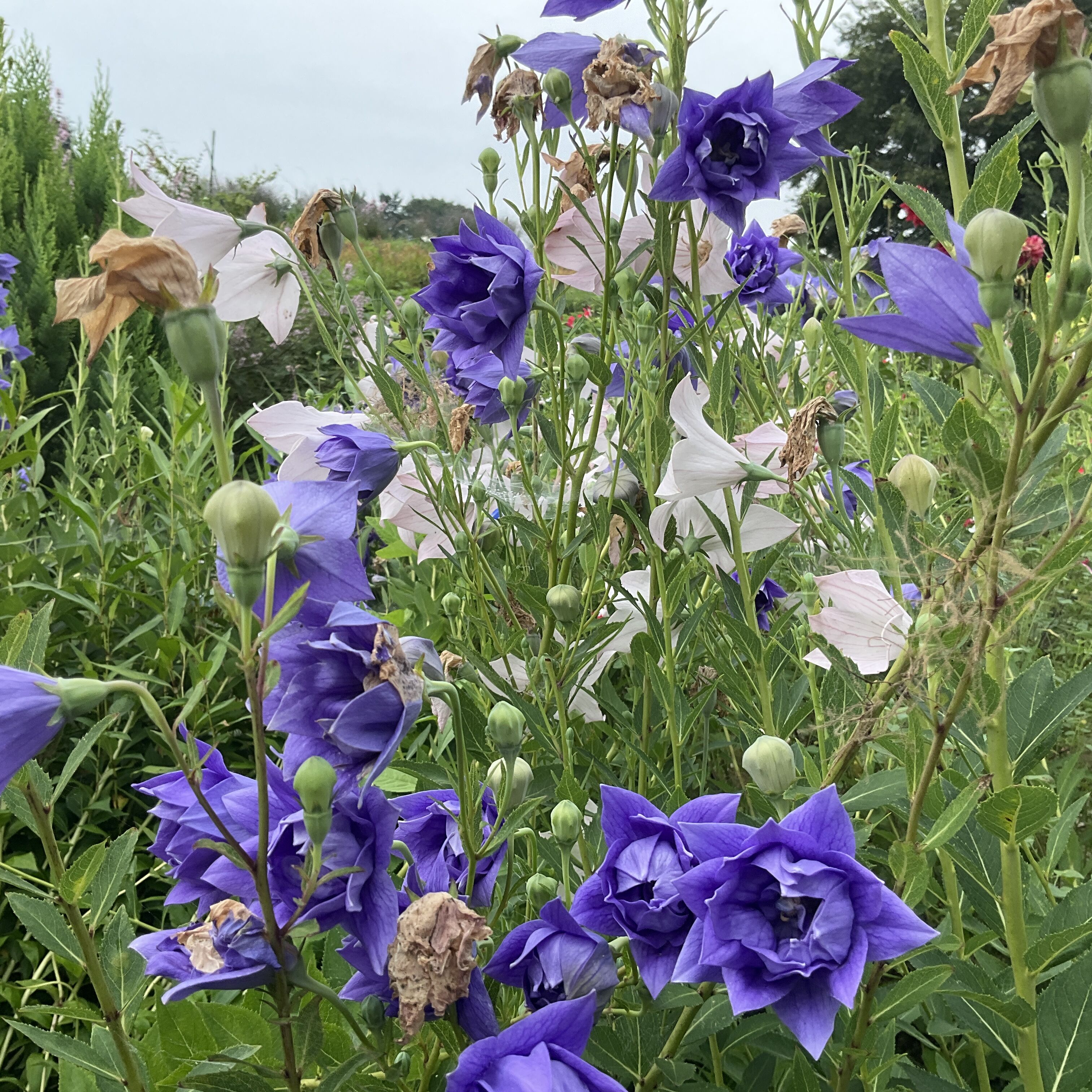 ダリアの花綺麗に咲いています。八重咲きキキヨウ綺麗に咲いてます。