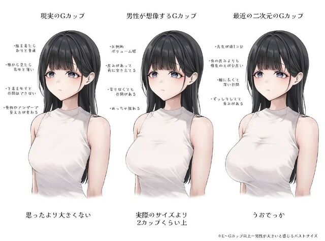 二次元で普通乳とされるキャラの大きさが現実にいたら
