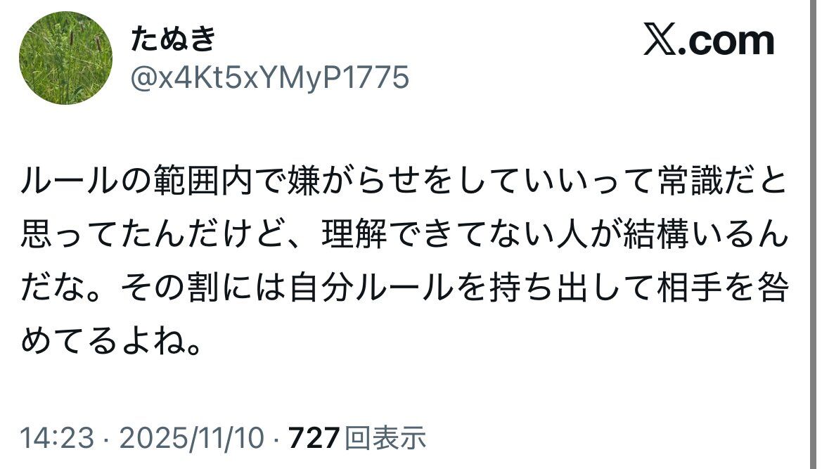 嫌がらせ自体がルール違反とは考えないんだな