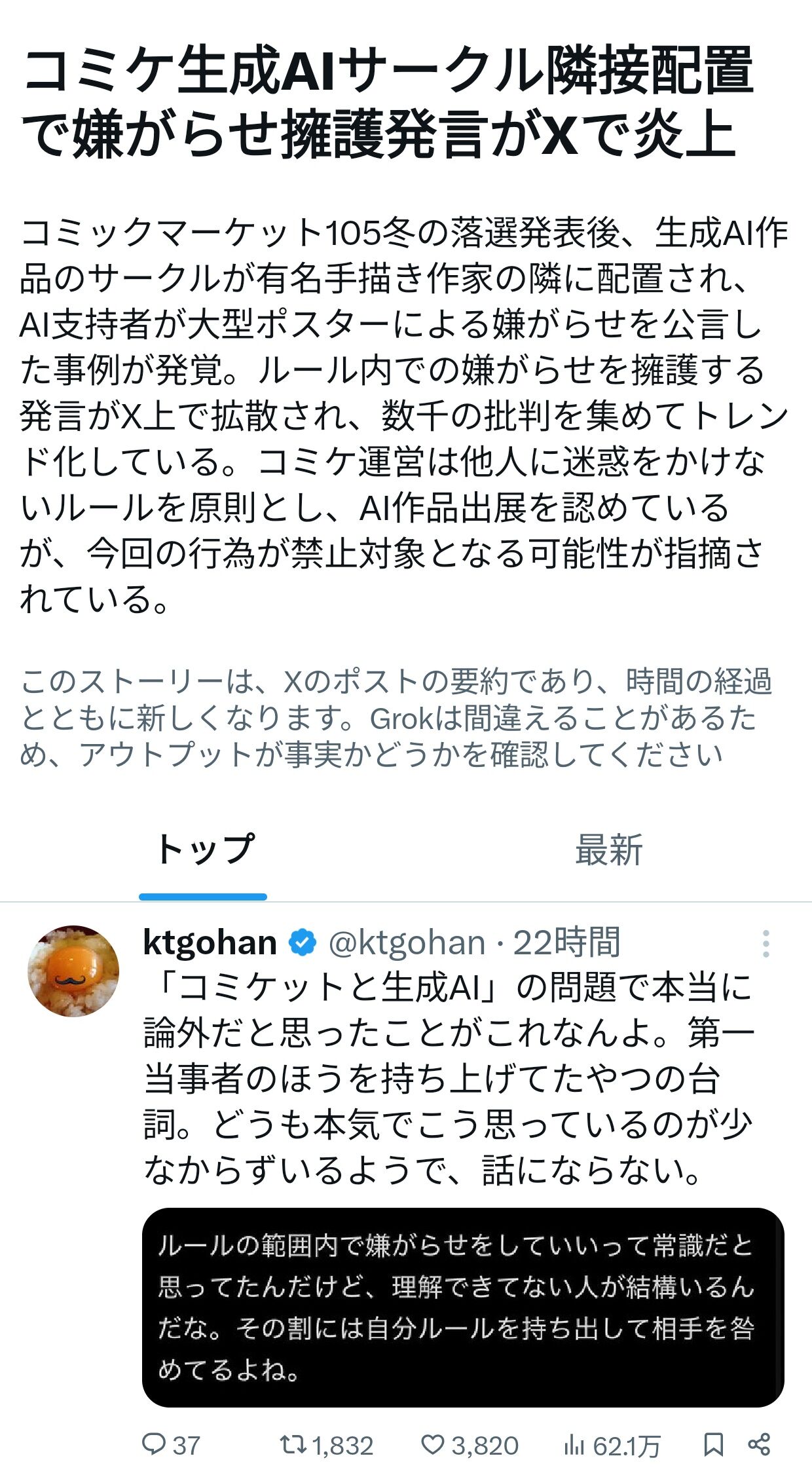 AIかどうかに関係なくほとんどの二次創作をしているコミケ参加者に効くからやめろと
