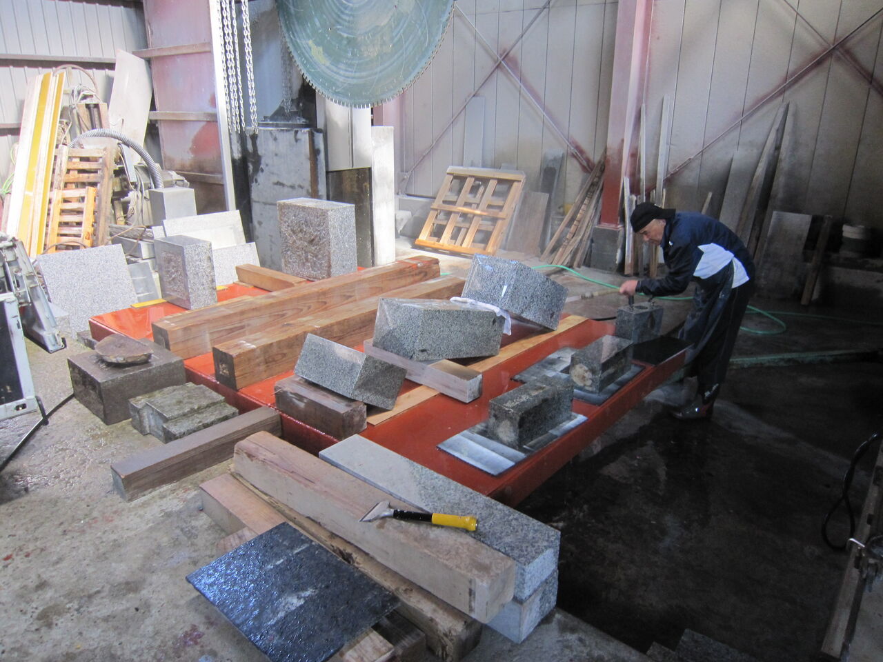 石材そのものの値段を決める要素の一つに「歩留まり」があります。石は天然の素材なのでキズや色ムラなどがあって、採れた石の全てが製品にはなりません(先の庵治石の場合、お墓になるのは全体の数%)。