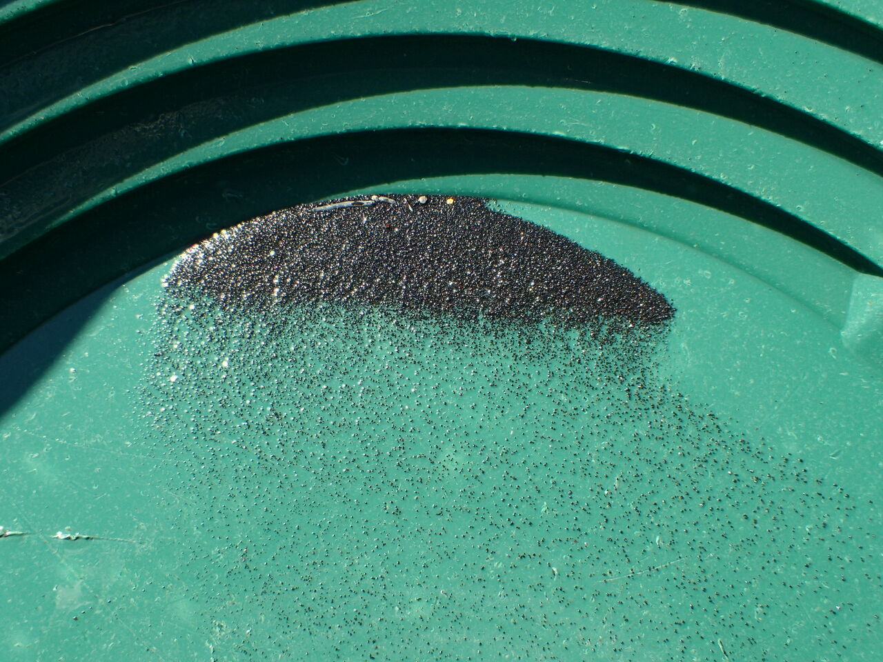パンニングします。水の中でゆすりながら重い砂を残すようにします。