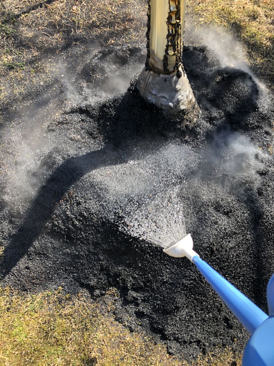 全体が黒くなったので、上呂で散水し、消火します。