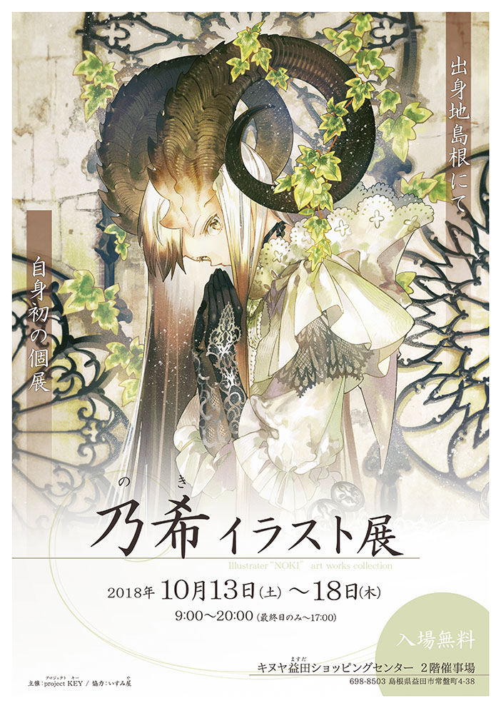 主催の project KEY さん・乃希さんとというのは、普段から「島根県内出身・在住の創作作家(クリエイター)」さん達のためのイベントを各種、企画・開催されているという地域密着型の運営さんで、この乃希さんの個展も島根の西側にある「益田(ますだ)市」というところでの開催となります。