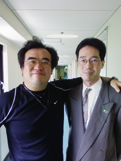 写真は、初演の指揮をして下さった、吉田行地さんと、ピロティーホールの楽屋廊下で。