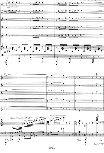 写真は、一楽章の最後のページ。上からFlute, Oboe, Clarinet, Bassoon, Horn, そしてPianoです。