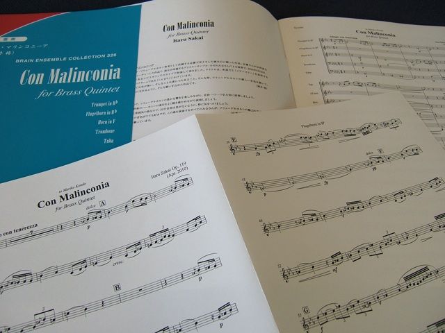 フリューゲルホルンをフューチャーした金管五重奏曲で、通常2nd Trp.のパートがフリューゲルホルンとなっています。10月18日には、初演してくれたブラスアンサンブル・ロゼさんの演奏によるCDも発売される予定です!