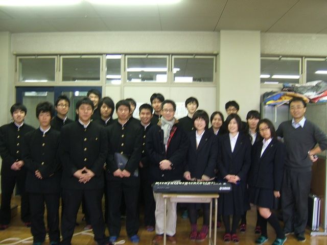 2月7日、母校である大阪府立香里丘高校へ、今年度誕生したばかりのグリークラブの練習にお邪魔して来ました。創立30周年を記念して、校歌の新しい吹奏楽版を編曲したのですが、グリークラブバージョンも編曲したので、音を聴かせてもらいました。短い時間でしたが楽しそうに歌ってくれていて嬉しかったです。11日の演奏会でお披露目だったそうです(^^)2013年02月07日