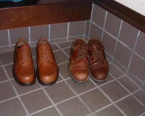 10月15日、大雨の奈良公園をさまよったせいか、学生時代からはき続けた茶色の革靴がついにお釈迦に…とにかく、靴の中がびしょぬれだったのですが、帰って底を見たら、ゴムがまっぷたつに割れていました。